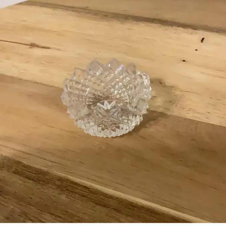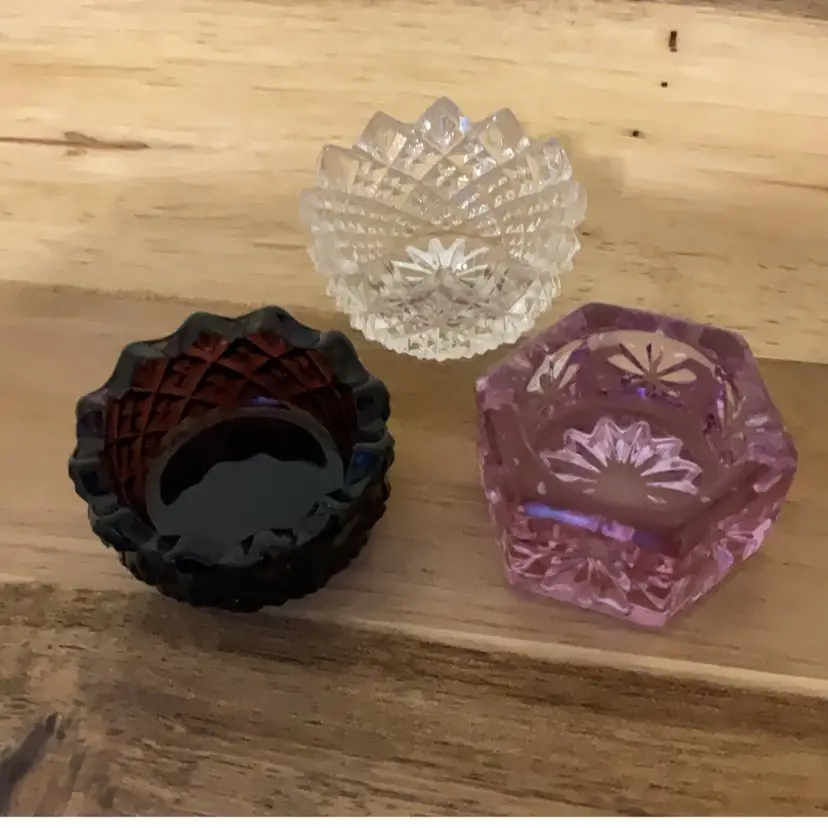 Vintage cut crystal salt cellars. Amethyst, clear and pink.