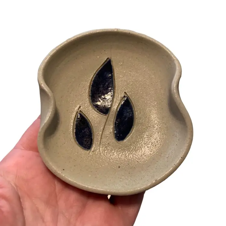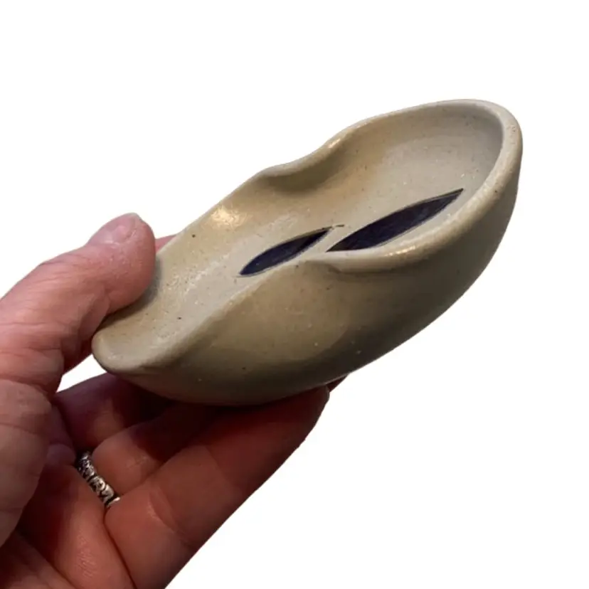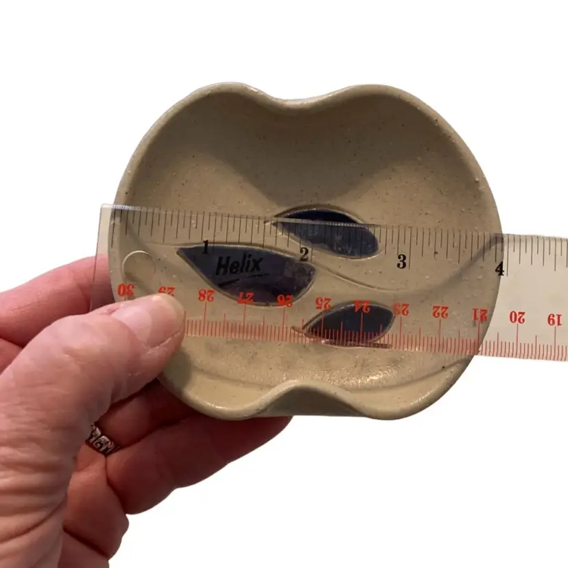 4” salt pottery dish with hand painted blue leaves. Marked Williamsburg pottery. No chips, cracks or repairs. See all photos for condition details and measurements. Thanks for checking out my listings.