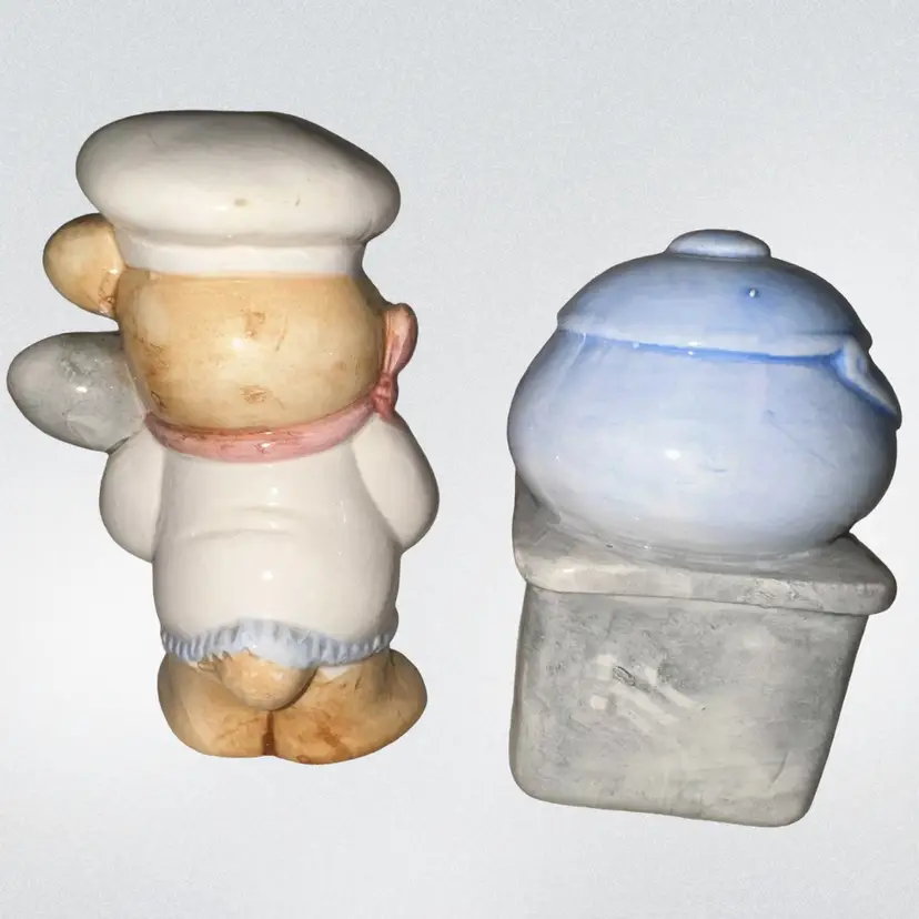 Teddy Bear chef & Pot ceramic salt & pepper shakers