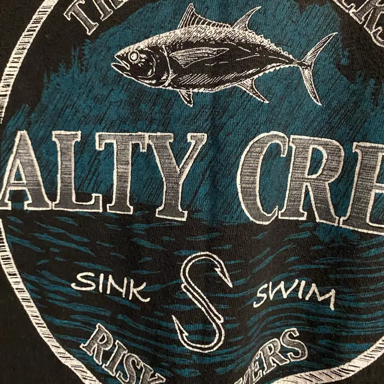 There is some wash wear to graphic as shown in photos, no stains or damages Pit to pit across is 25” for chest measurement of 50” Length 29” 100% cotton #fish #fishing #graphictee #saltycrew