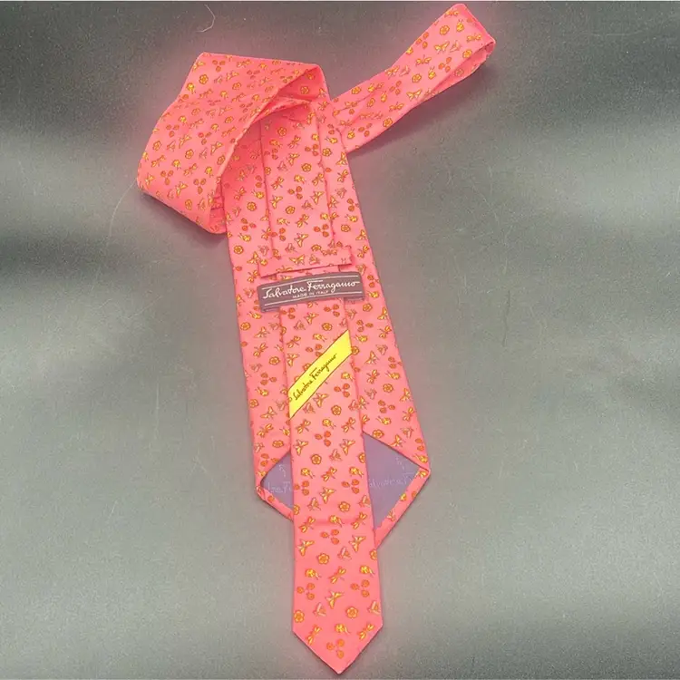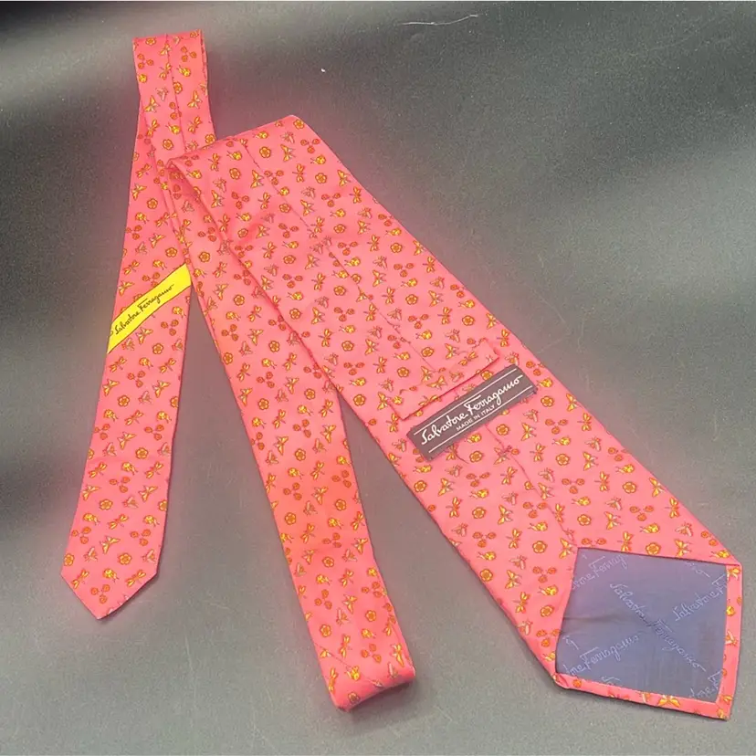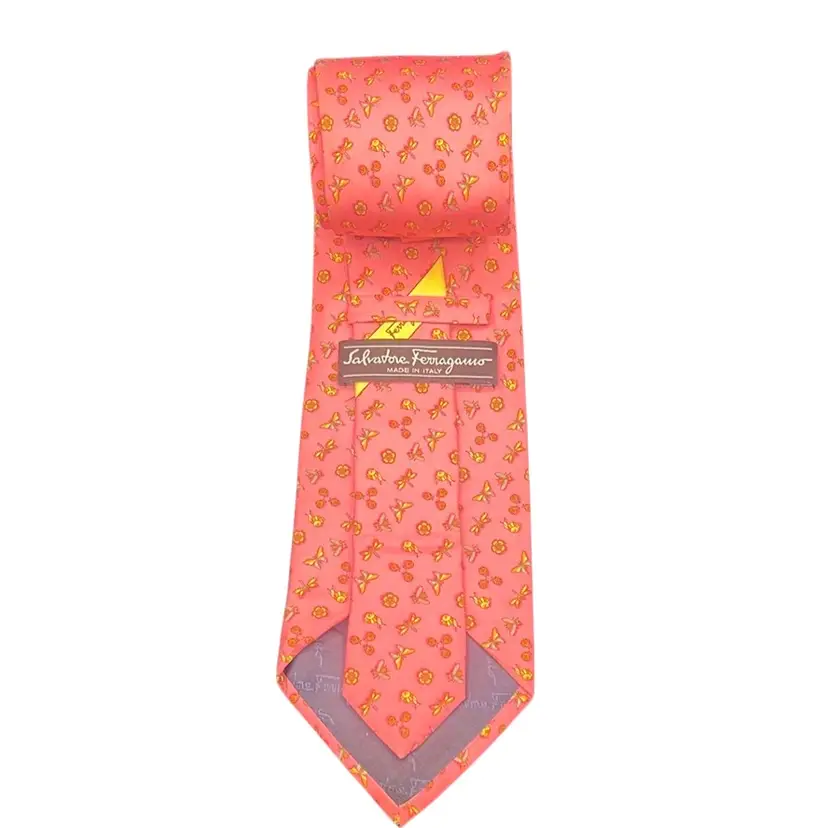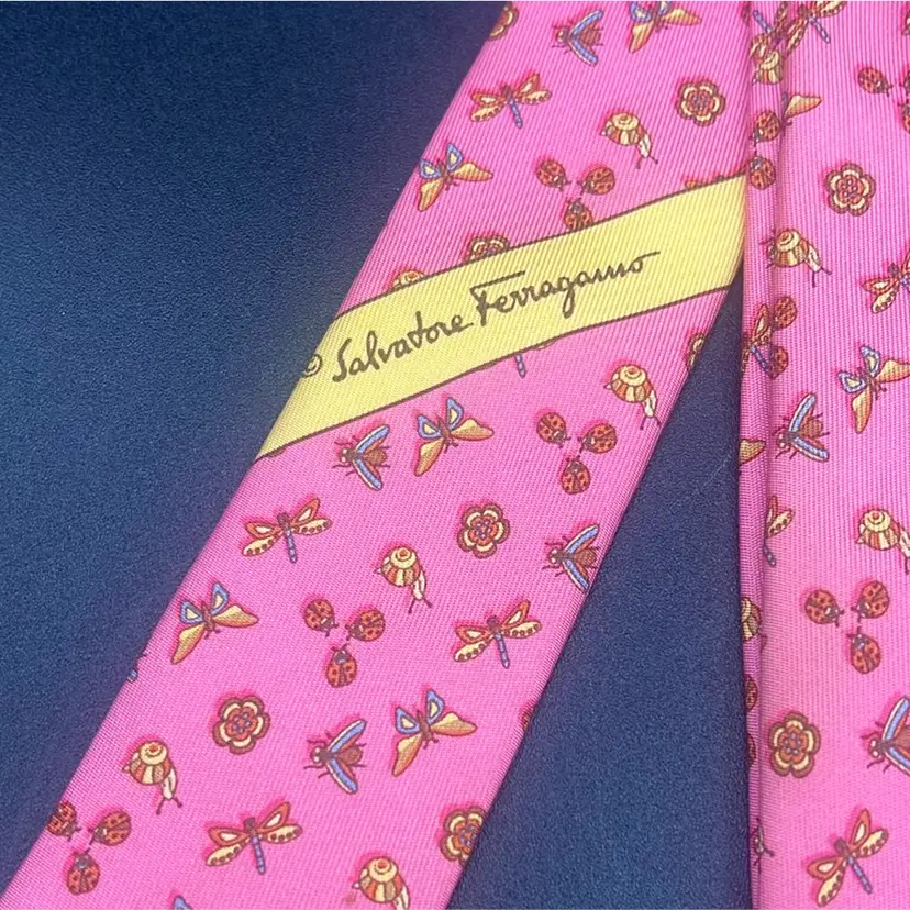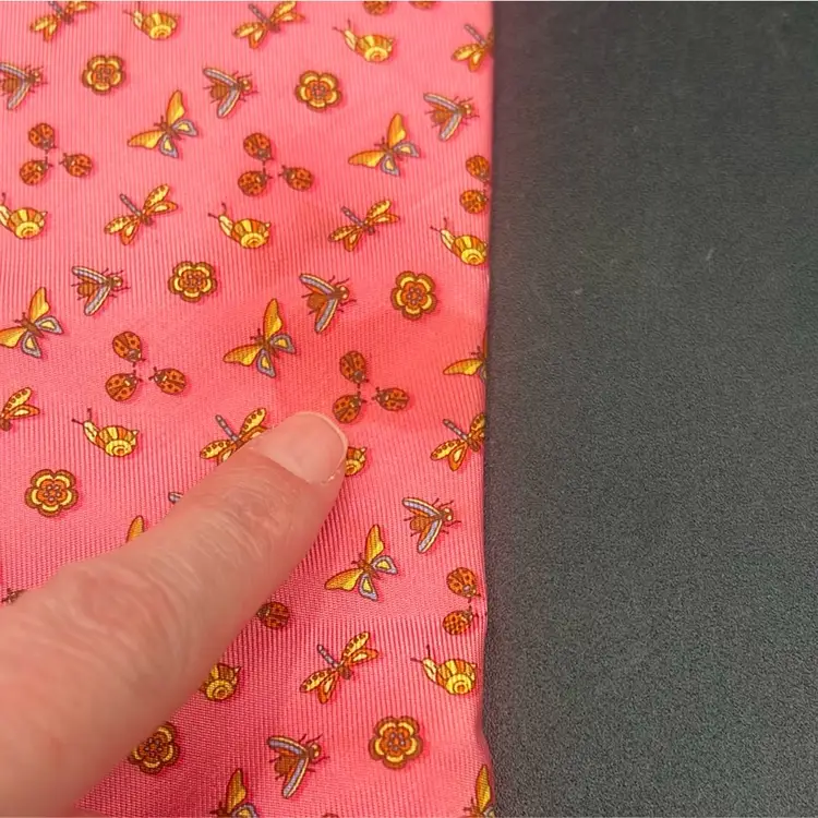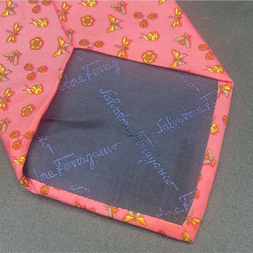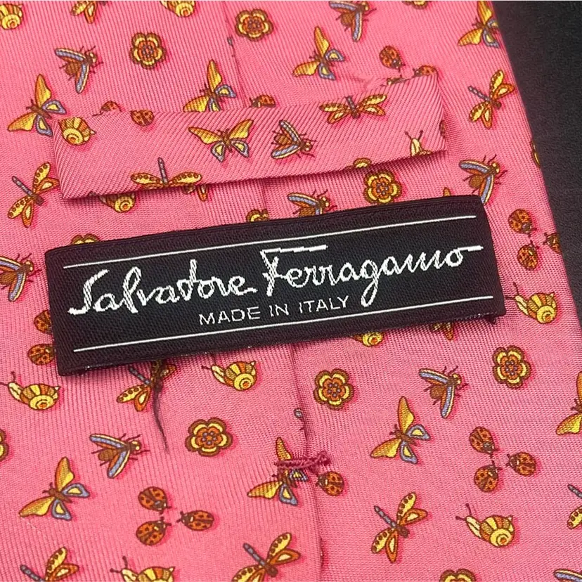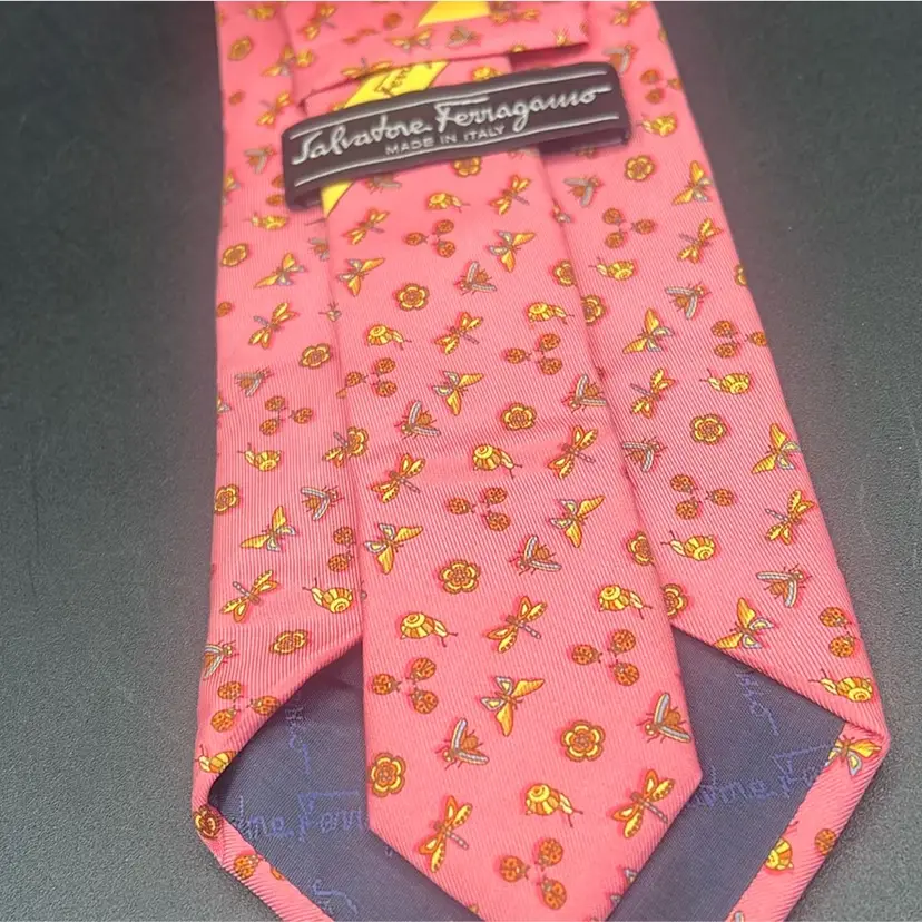 Salvatore Ferragamo Pink Tie-Insects Floral Butterflies Dragonflies Italy Silk Classic (57 in.-60 in.) Has a flaw • Darker mark