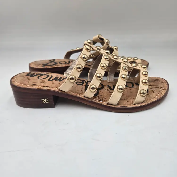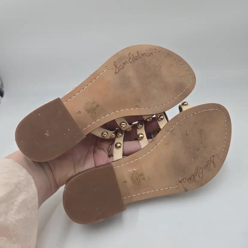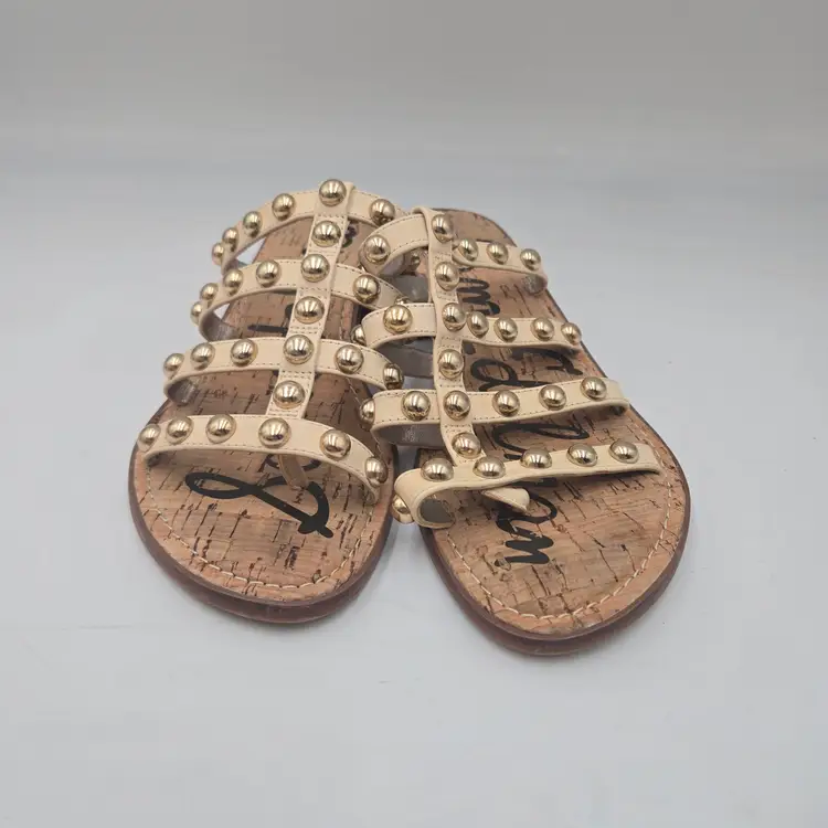 Sam Edelman Studded Sandals Strappy Gladiator Beige Cream JUNIPER 2 Size 7