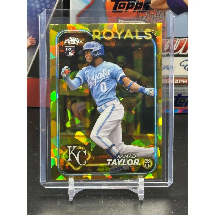 Rookie card of Samad Taylor from the 2024 Topps Chrome Sapphire series. Features a stunning gold refractor finish.