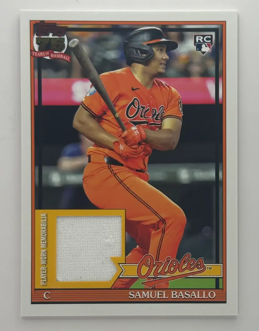 Topps rookie card featuring Samuel Basallo with a player-worn memorabilia patch. Perfect for Orioles fans and collectors!