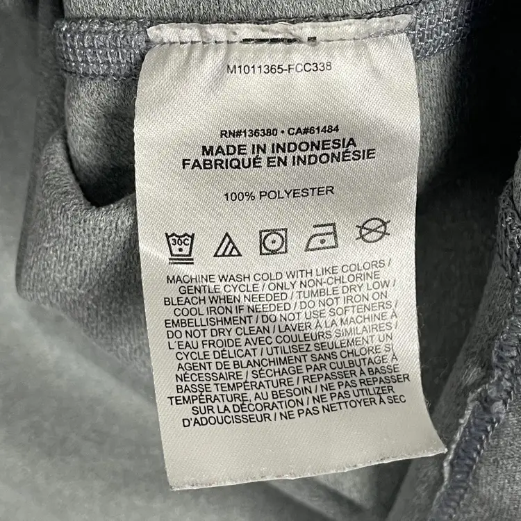 Style and production information: Inner care label lists RN# 136380, CA# 61484, code "M1011365-FCC338" with additional tag "M1011259" and season code "S20 11/2019".