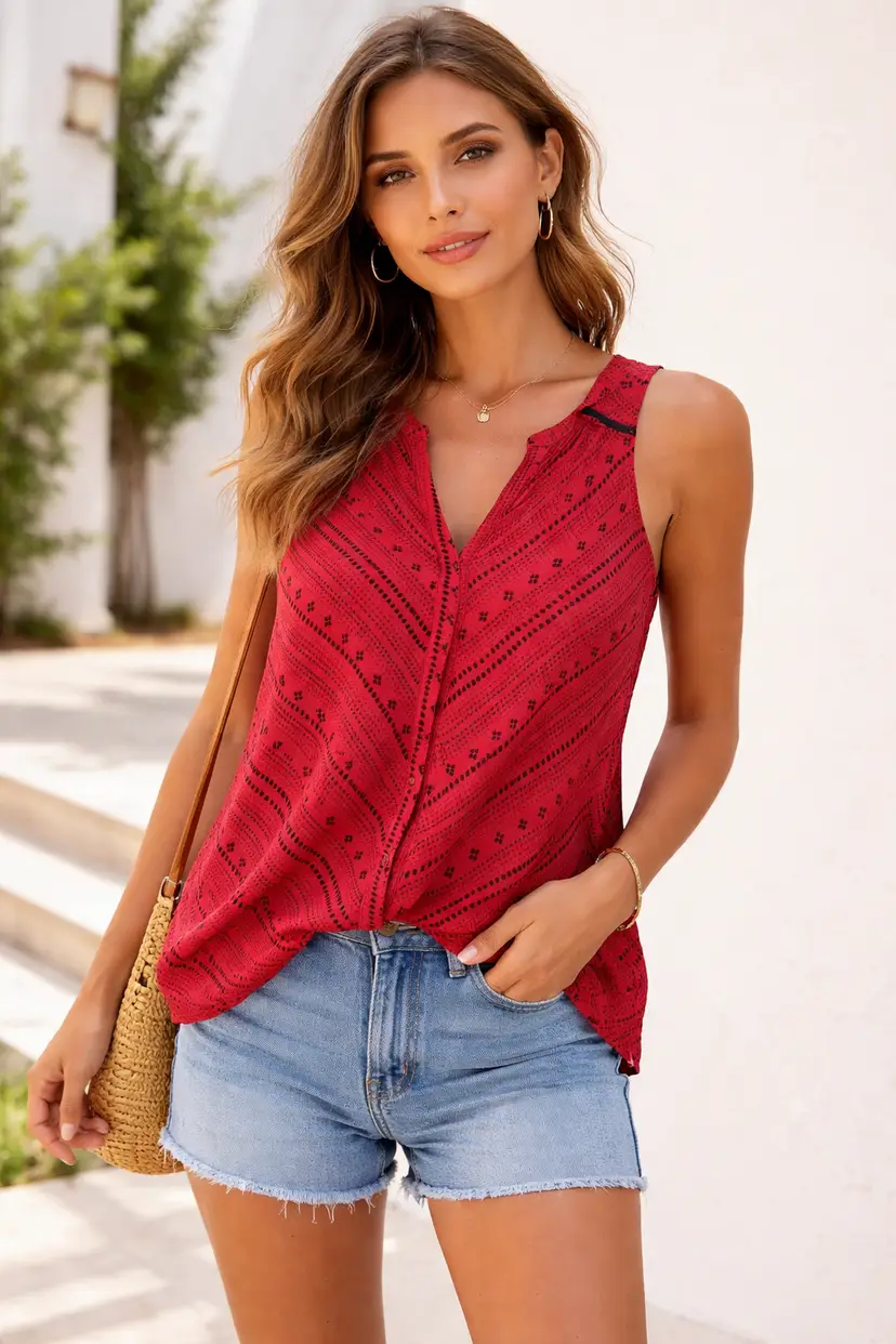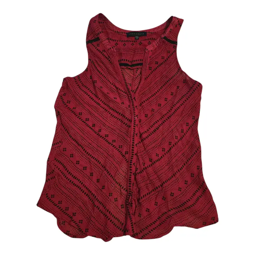 Sanctuary 100% Silk V Neckline Sleeveless Red Tank Top Size S High Low Hem