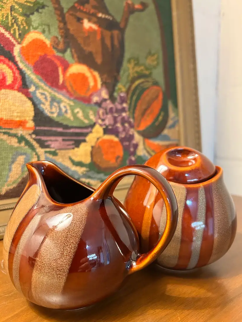 Excellent condition! Sango Avanti Brown Stoneware Cream and Sugar set.