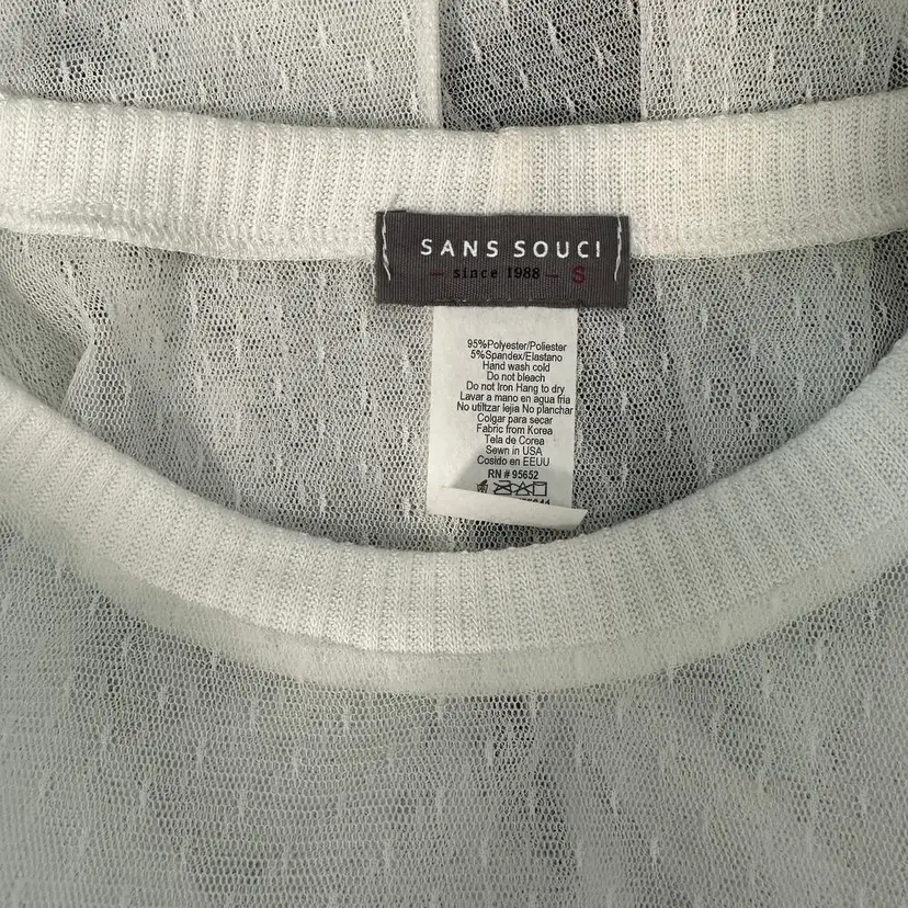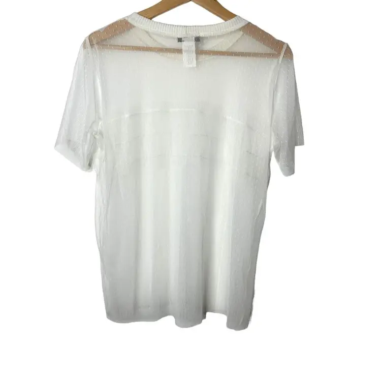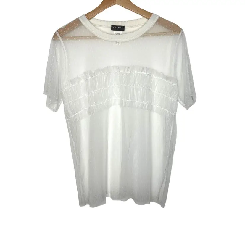 Sans Souci Mesh Sheer White Tee With Smocking