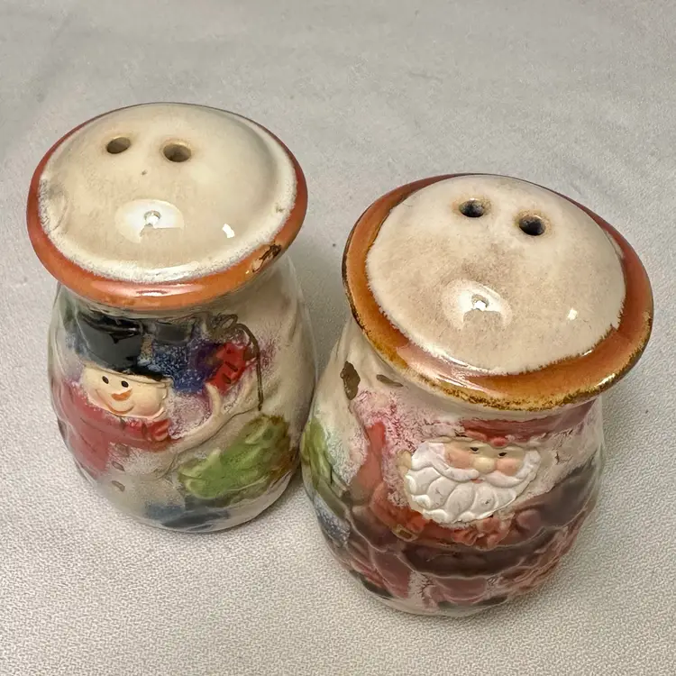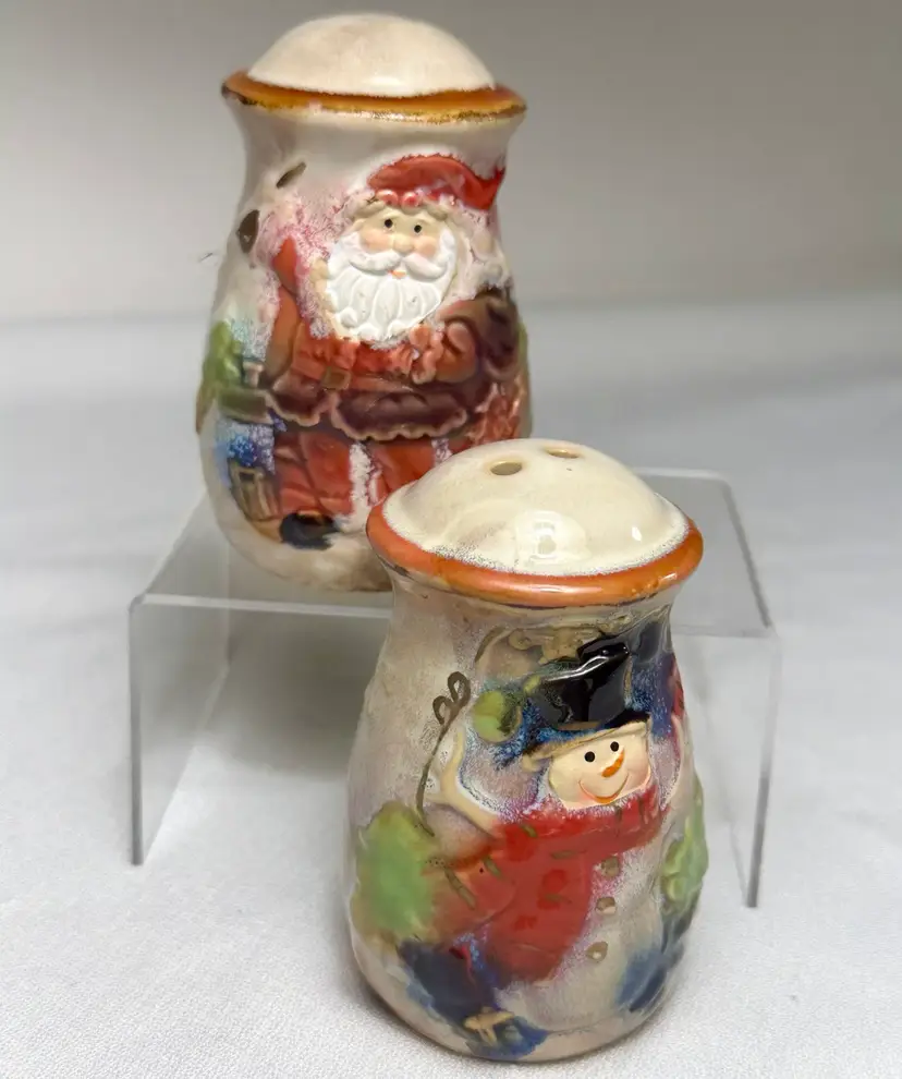 This listing is for a set of really cute vintage Christmas salt and pepper shakers. One is Santa and one is a reindeer. They are made of ceramic and they are beautifully glazed.