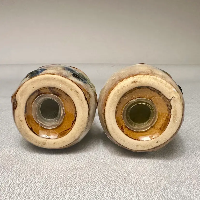 They measure approximately 3.5” tall with a 2” bottom base. They are in excellent vintage condition, no cracks or nicks.
