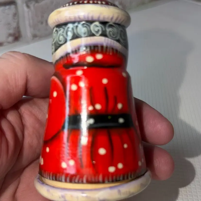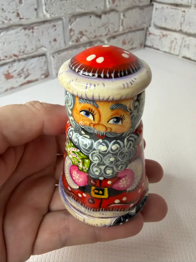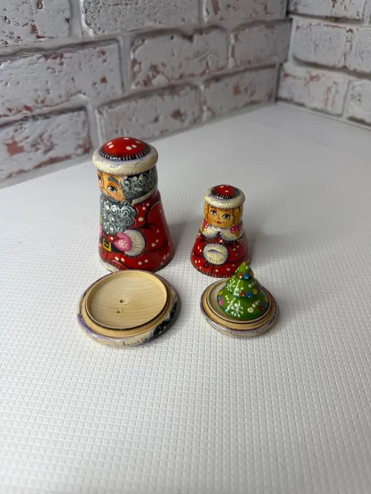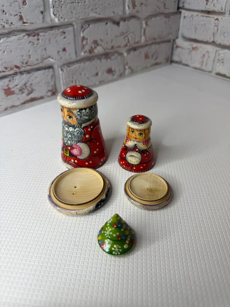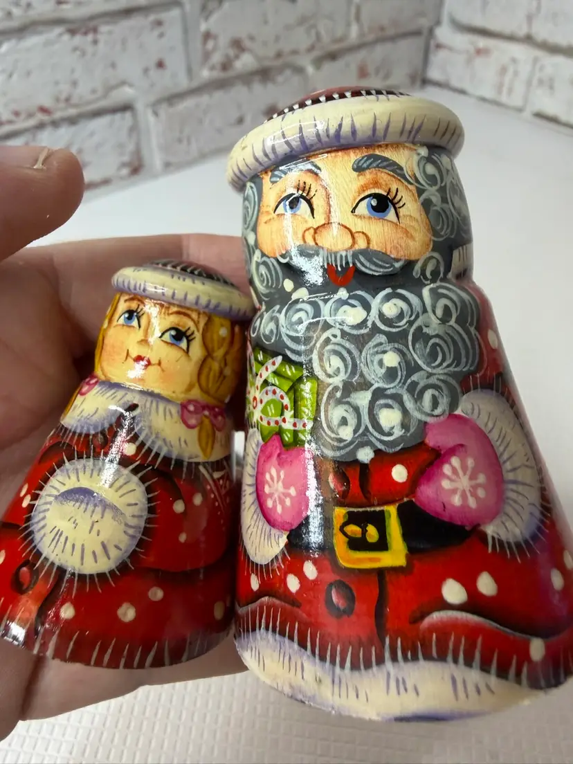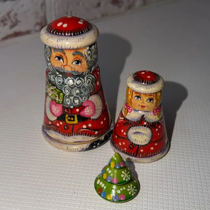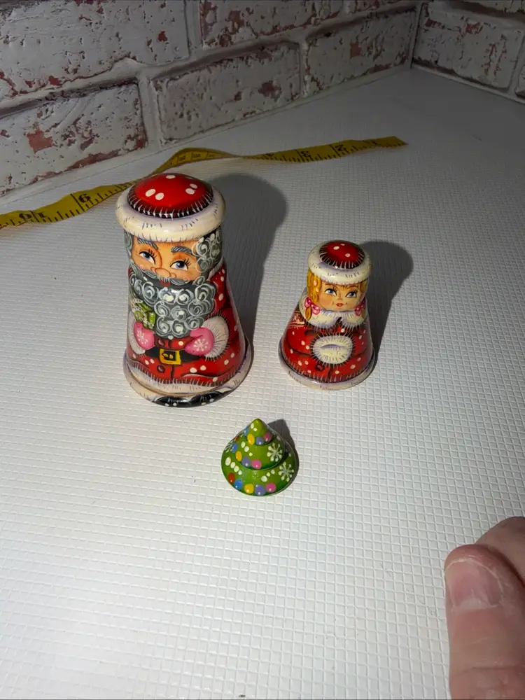 Signed and measured 4.5” tall Santa Claus Christmas Nesting Dolls hand-painted