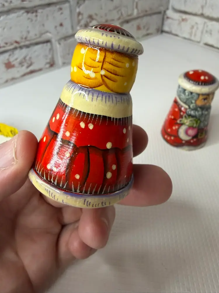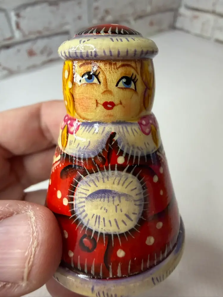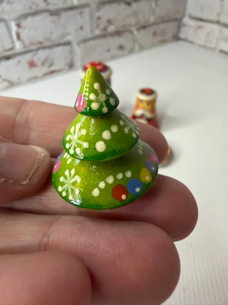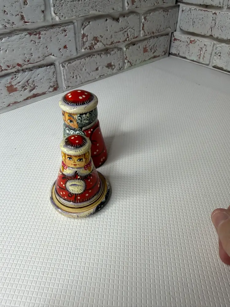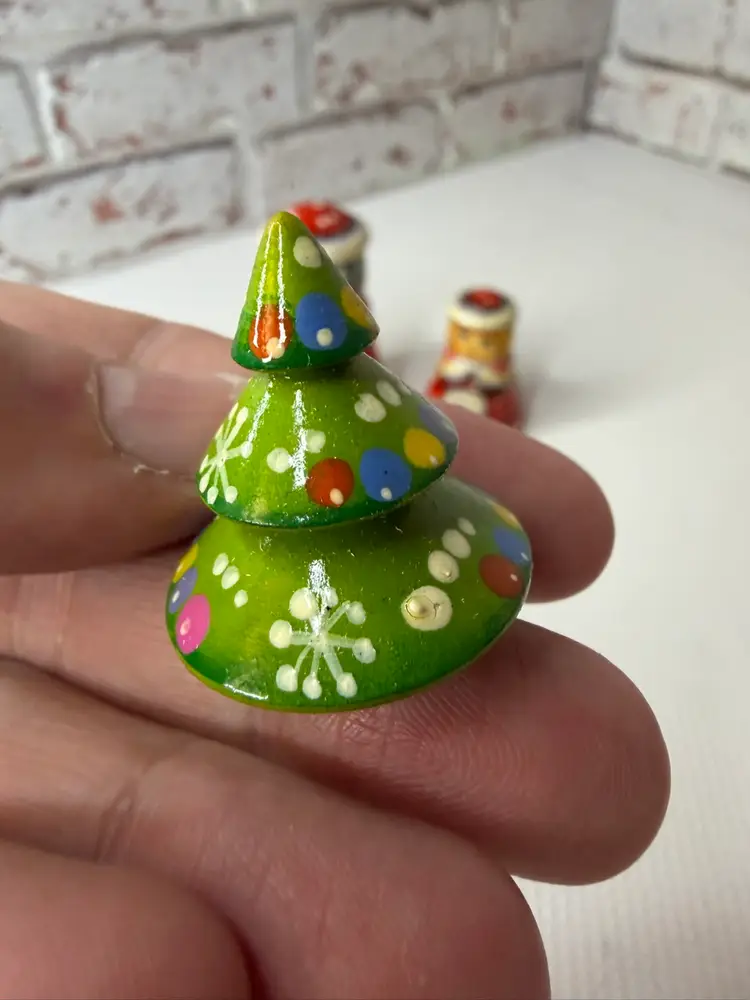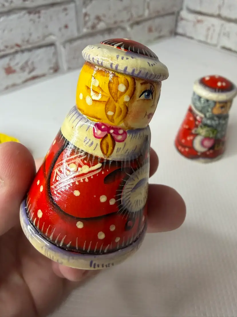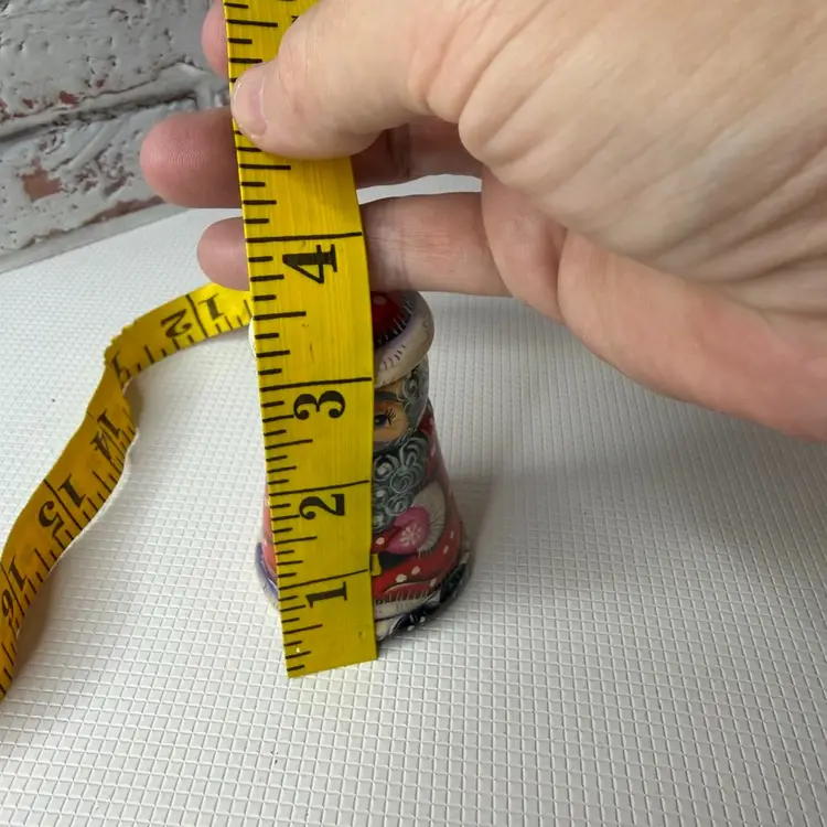 Signed and measured 4.5” tall Santa Claus Christmas Nesting Dolls hand-painted