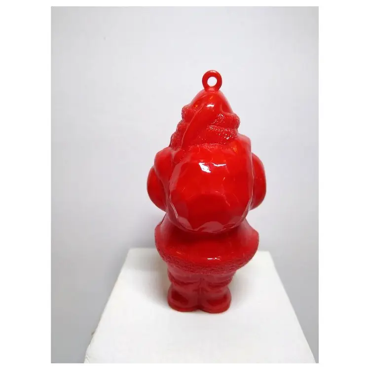 Vintage unused 3.5" tall red hard plastic Santa Claus ornament. Excellent condition.