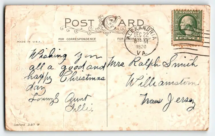 Features: Embossed Custom Bundle: No Time Period Manufactured: 1900-1919 Subject: Santa Claus Number of Items in Set: 1 Occasion: Christmas Era: Pre-War (Pre-1914) Size: Standard (5.5 x 3.5 in) Country/Region of Manufacture: Unknown Material: Paper Brand/Publisher: Stecher Year Manufactured: 1920 Postage Condition: Posted Artist: Unknown Original/Licensed Reprint: Original Unit of Sale: Single Unit Theme: Art, Children & Infants, Fantasy, Greetings, Holiday, Santa Claus, Santa, Christmas Tree, Toy Doll, Lighted Candles Type: Printed (Lithograph)