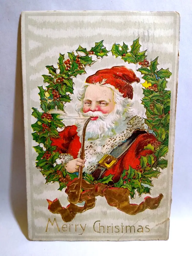 Number of Items in Set: 1 Unit of Sale: Single Unit Artist: Unknown Occasion: Christmas Size: Standard (5.5 x 3.5 in) Signed: No Custom Bundle: No Material: Paper Year Manufactured: 1910 Original/Licensed Reprint: Original Brand/Publisher: Unbranded Subject: Santa Personalize: No Type: Printed (Lithograph) Era: Divided Back (1907-1915) Theme: Art, Fantasy, Greetings, Holiday, Saint Nick, Kris Kringle, Father Christmas, Christmas Tree, Christmas Greetings, Old World, Pipe, Gilding, Gilded Features: Divided Back Time Period Manufactured: 1900-1919 Country/Region of Manufacture: Germany Postage Condition: Posted
