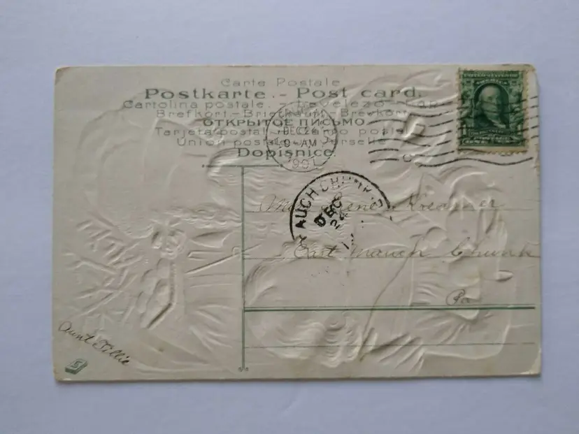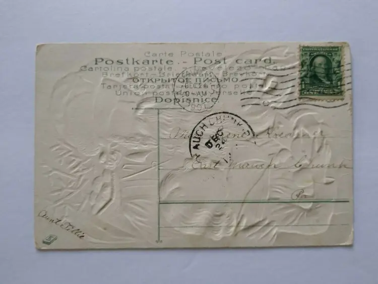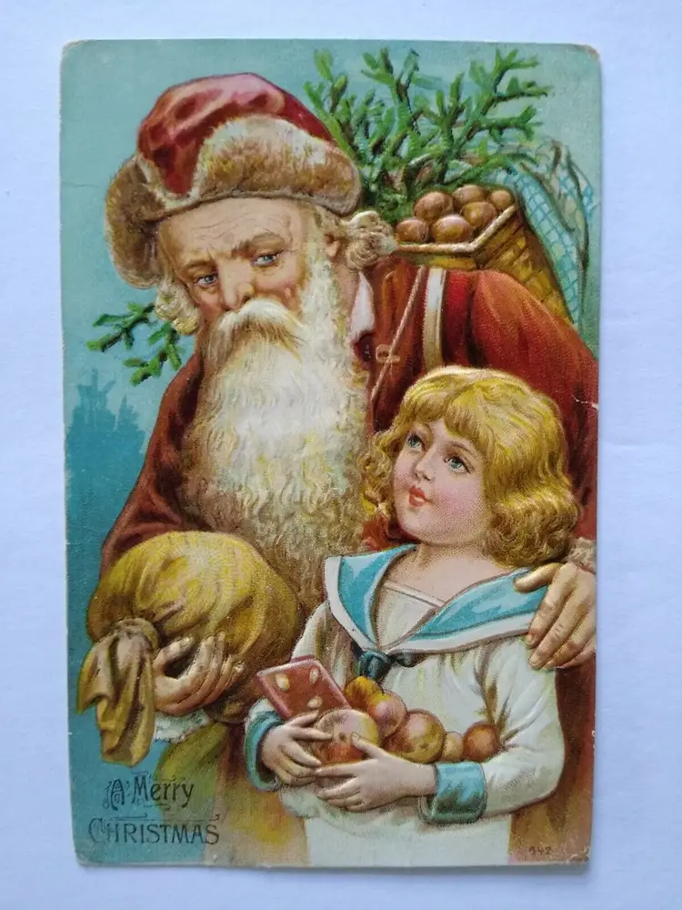 Unit of Sale: Single Unit Era: Pre-War (Pre-1914) Original/Licensed Reprint: Original Occasion: Christmas Postage Condition: Yes Features: Embossed, Divided Back Subject: Santa Material: Paper Theme: Fantasy, Art, Holiday, Greetings Time Period Manufactured: 1900-1919 Type: Printed (Lithograph) Artist: Unknown Custom Bundle: No Size: Standard (5.5 x 3.5 in) Country/Region of Manufacture: Unknown Brand/Publisher: Unknown Number of Items in Set: 1 Year Manufactured: 1910