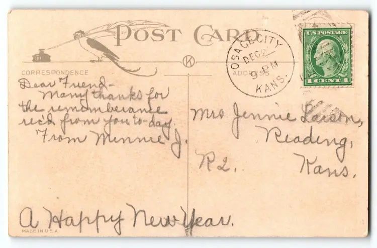Number of Items in Set: 1 Unit of Sale: Single Unit Artist: Unknown Occasion: Christmas Size: Standard (5.5 x 3.5 in) Signed: No Custom Bundle: No Material: Paper Year Manufactured: 1920 Original/Licensed Reprint: Original Brand/Publisher: K Subject: Santa Type: Printed (Lithograph) Era: White Border (1915-1930) Theme: Art, Fantasy, Greetings, Holiday, Santa Claus Features: Divided Back Time Period Manufactured: 1900-1919 Country/Region of Manufacture: United States Postage Condition: Posted