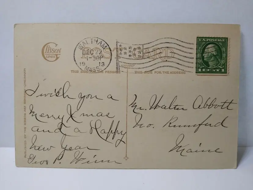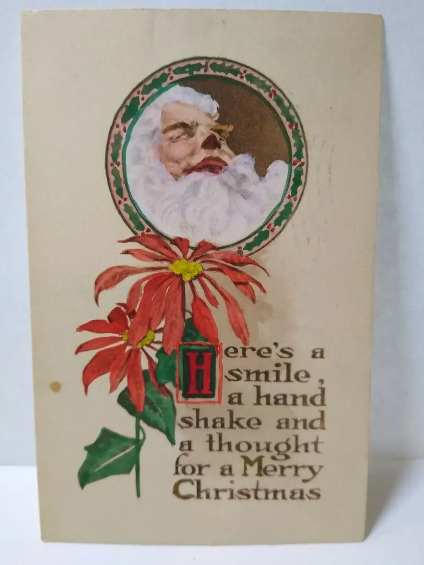Size: Standard (5.5 x 3.5 in) Custom Bundle: No Type: Printed (Lithograph) Number of Items in Set: 1 Original/Licensed Reprint: Original Occasion: Christmas Time Period Manufactured: 1900-1919 Unit of Sale: Single Unit Era: Pre-War (Pre-1914) Artist: Unknown Country/Region of Manufacture: United States Material: Paper Theme: Saint Nick, Kris Kringle, Father Christmas, Art, Fantasy, Greetings, Holiday, Poinsettias Features: Divided Back Subject: Santa Postage Condition: Posted Brand/Publisher: Gibson Year Manufactured: 1913