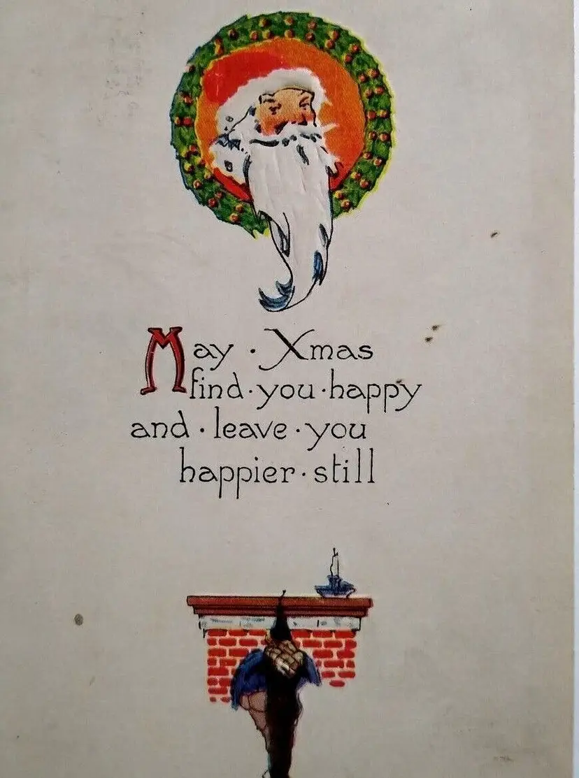 Size: Standard (5.5 x 3.5 in) Custom Bundle: No Personalize: No Type: Printed (Lithograph) Year Manufactured: 1910 Number of Items in Set: 1 Signed: No Original/Licensed Reprint: Original Occasion: Christmas Time Period Manufactured: 1900-1919 Unit of Sale: Single Unit Era: Pre-War (Pre-1914) Artist: Unknown Country/Region of Manufacture: Unknown Material: Paper Theme: Santa Claus, Art, Fantasy, Greetings, Holiday, Fireplace, Stocking, Wreath Features: Divided Back, Embossed Subject: Santa Postage Condition: Unposted Brand/Publisher: Unbranded Franchise: Unknown
