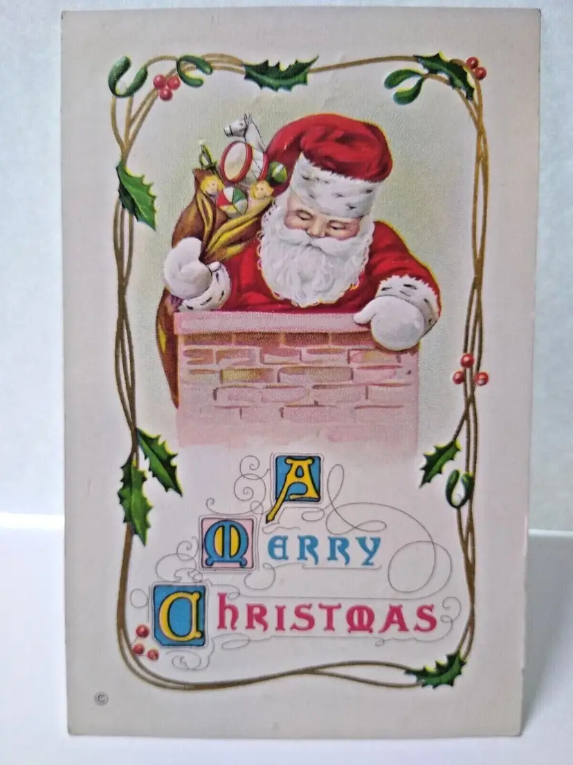 Size: Standard (5.5 x 3.5 in) Artist: Unknown Year Manufactured: 1910 Country/Region of Manufacture: United States Subject: Santa Custom Bundle: No Number of Items in Set: 1 Signed: No Postage Condition: Unposted Original/Licensed Reprint: Original Occasion: Christmas Material: Paper Theme: Saint Nick, Kris Kringle, Father Christmas, Art, Fantasy, Greetings, Holiday, Chimney Time Period Manufactured: 1900-1919 Unit of Sale: Single Unit Era: Pre-War (Pre-1914) Brand/Publisher: Stecher Personalize: No Type: Printed (Lithograph) Features: Divided Back, Embossed Franchise: Stecher
