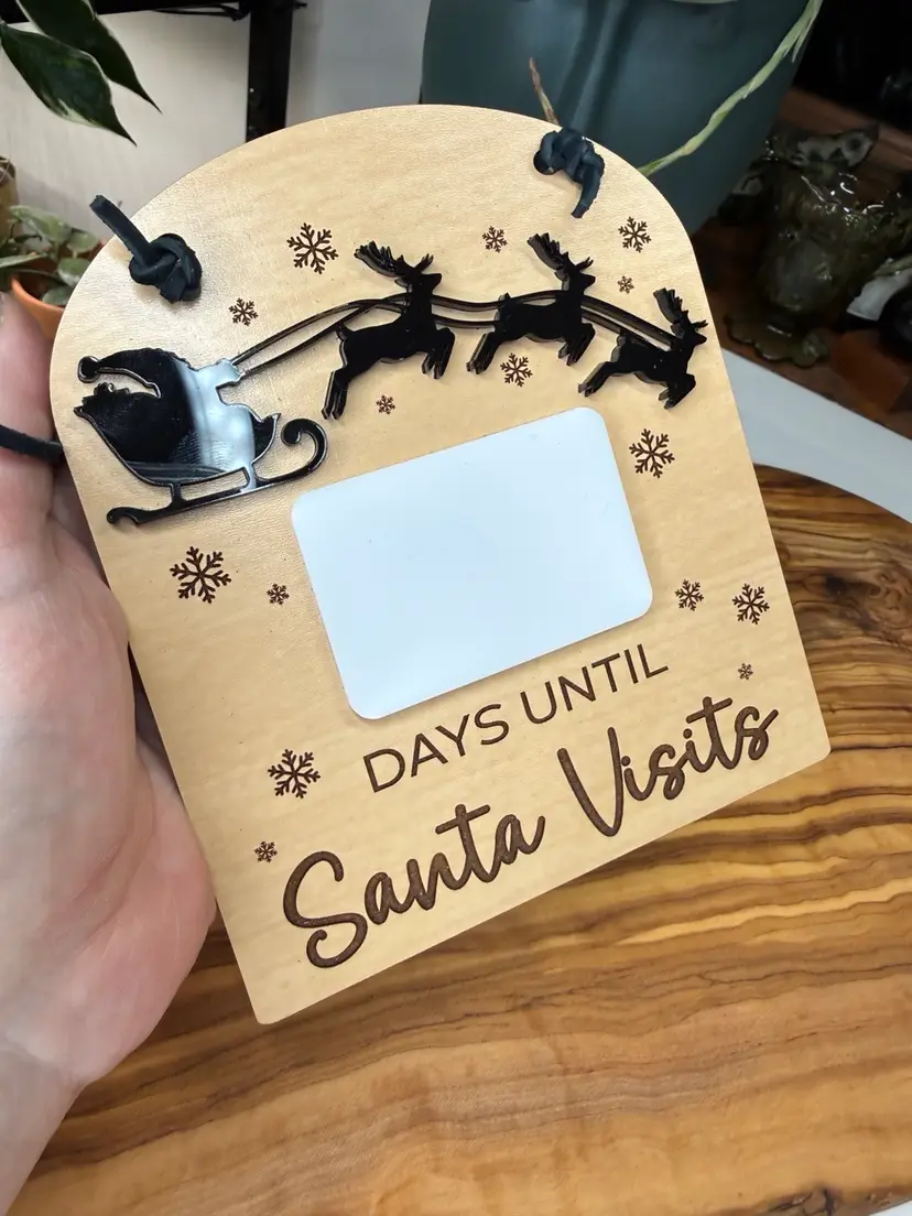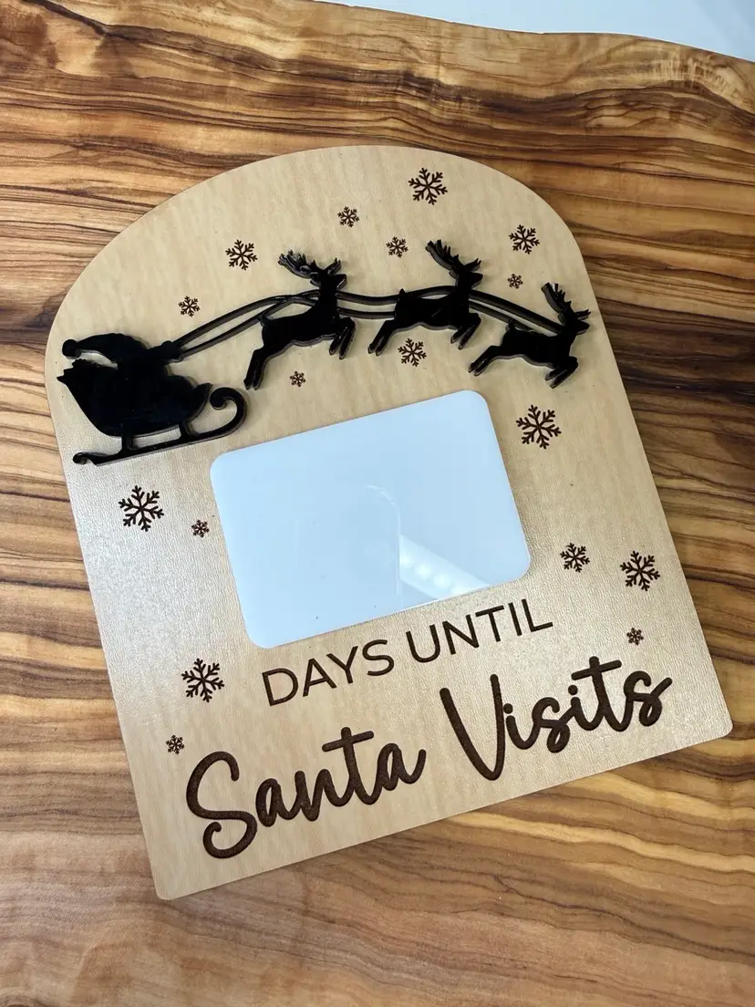 These Christmas countdown signs are from an eco-friendly MDF with a smooth coating engraved with festive snowflakes. A dry-erase marker can be used on the white glossy acrylic. Santa and his reindeer are laser-cut in glossy black acrylic add a cute touch. And, since you can use a dry-erase marker, these signs can be used year after year!
