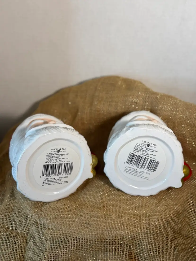 Set of 2 Made in China 1990’s American Greetings Forget Me Not One has a small chip at bottom 6in (including handle x3.5in (see pictures)