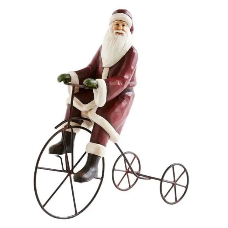 Santa On Tricycle. This adorable Santa is perfect for any mantle or table center piece. Adds a Winter festive feel to any home!! Adorable Décor Santa. With intricate detail and made with high quality material. Will bring a smile to anyone's face! 14-6-11 shp1420