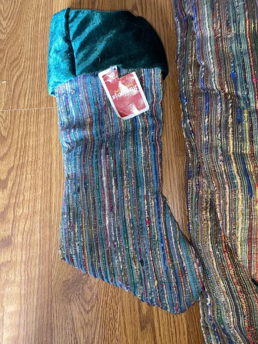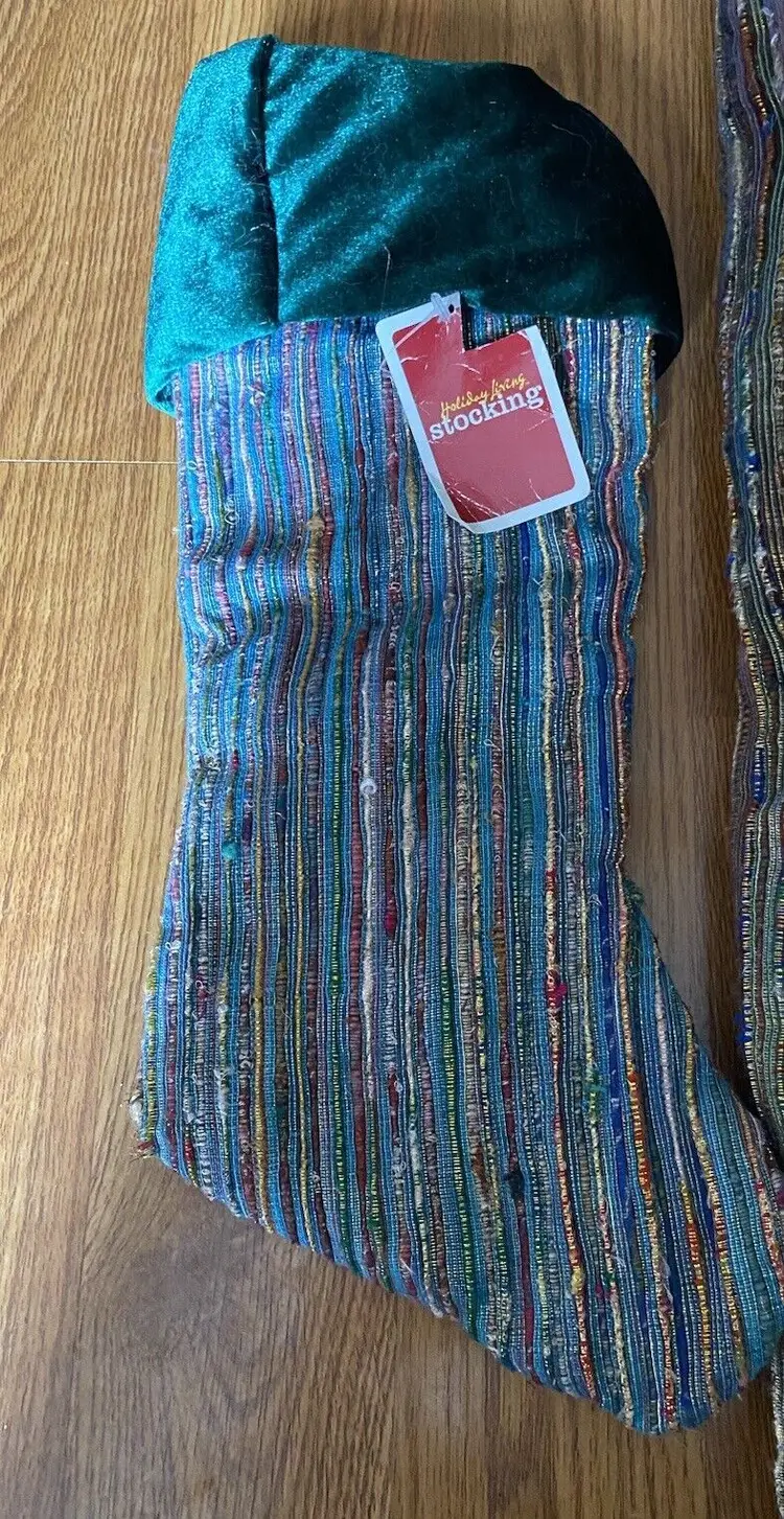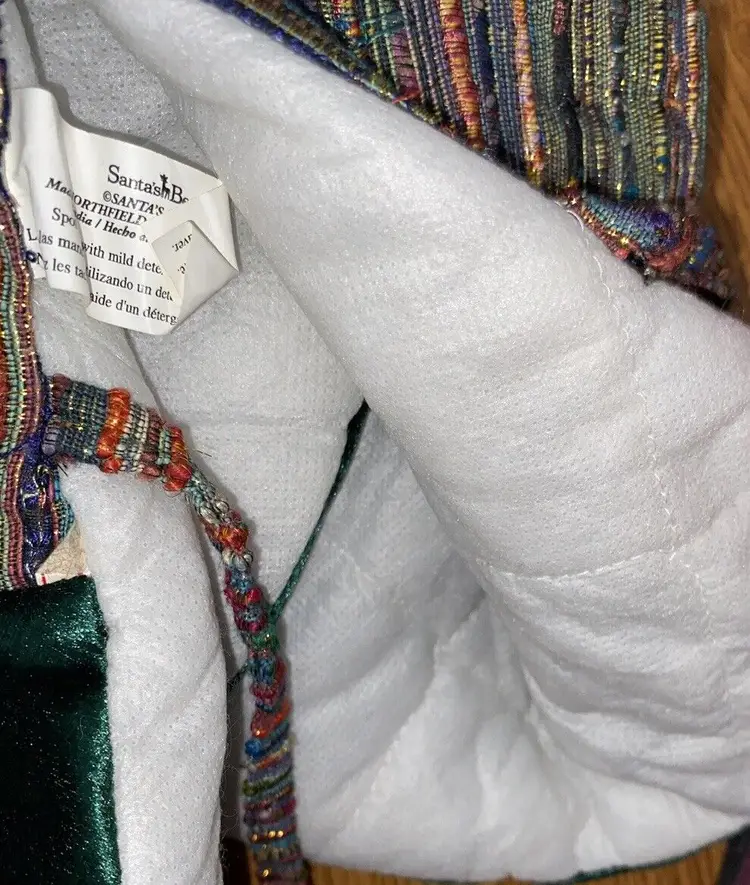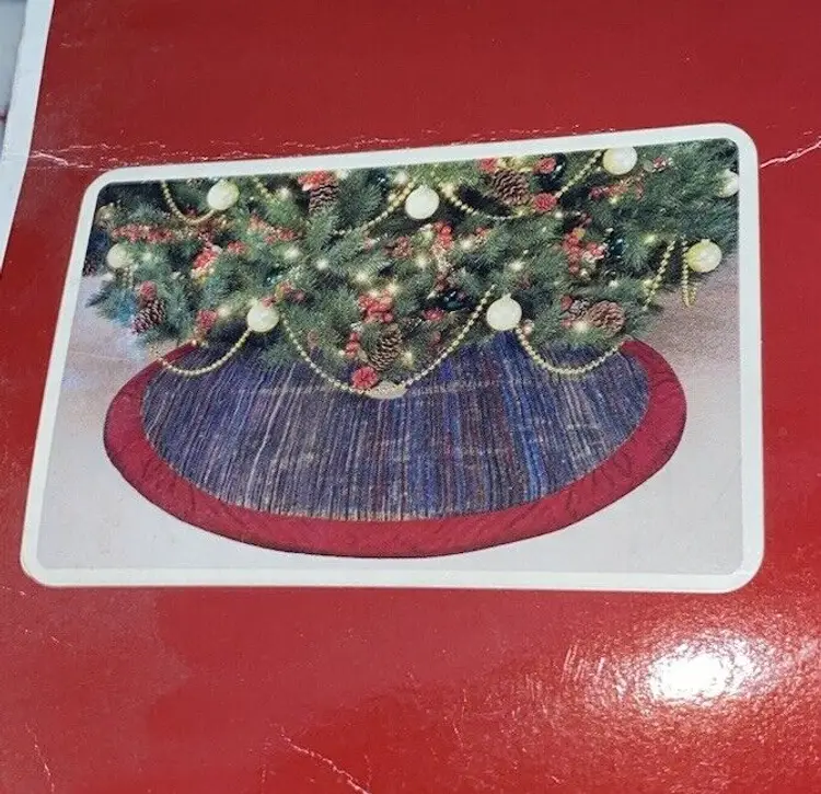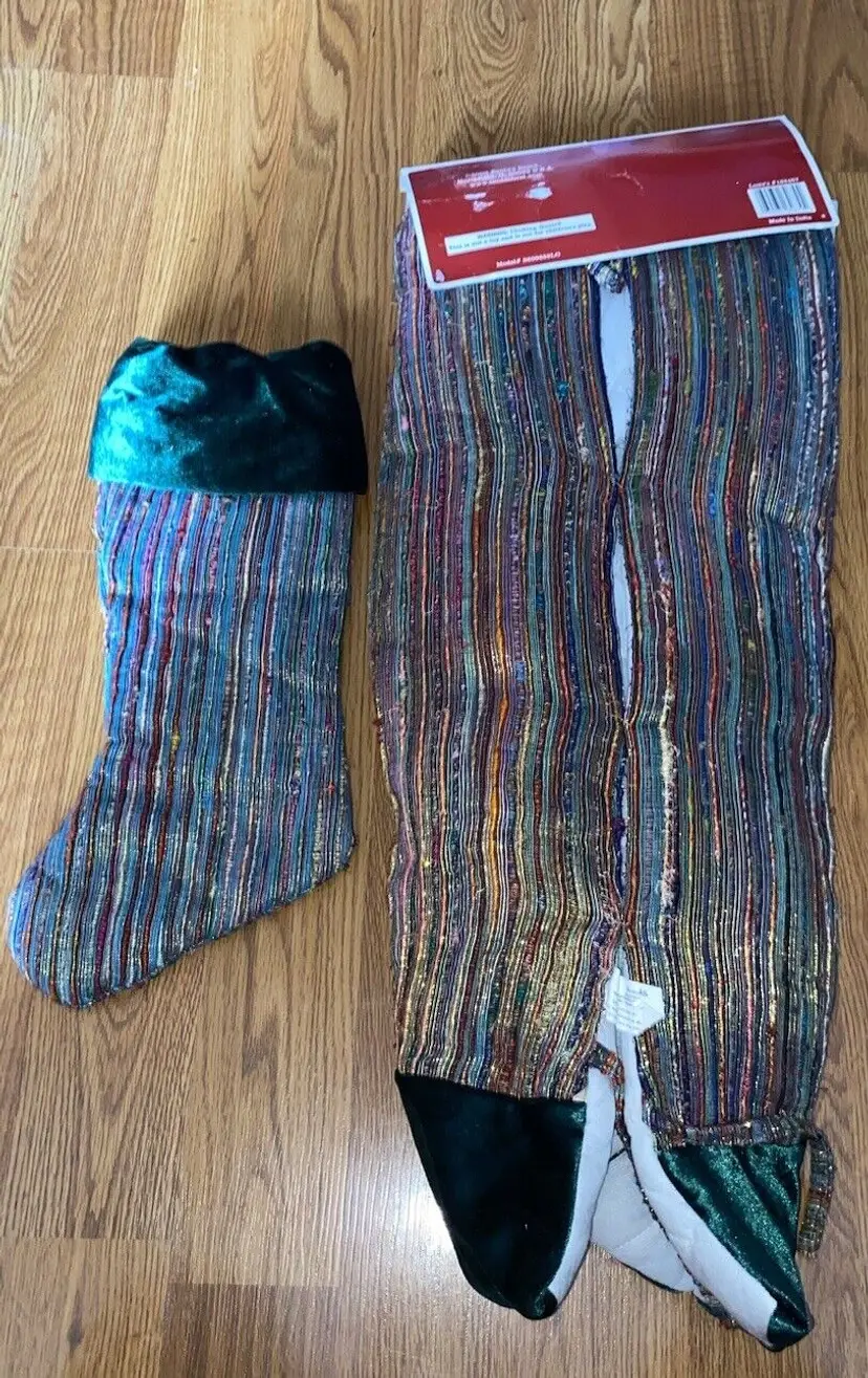Pattern: Striped Shape: Round Occasion: Christmas Size: Large Color: Multicolor Set Includes: Tree Skirt Material: Polyester, Velvet Year Manufactured: 2002 Item Length: 56” Brand: Santas Best Personalize: No Type: Tree Skirt Theme: Holiday Number of Items: 1