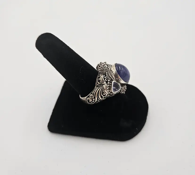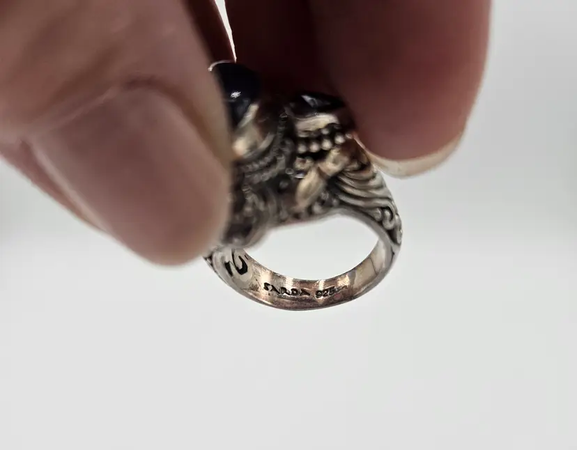 Wow! This ring size 7 is beautiful. Marked Sarda 925. Not tested and weighs 12 grams.