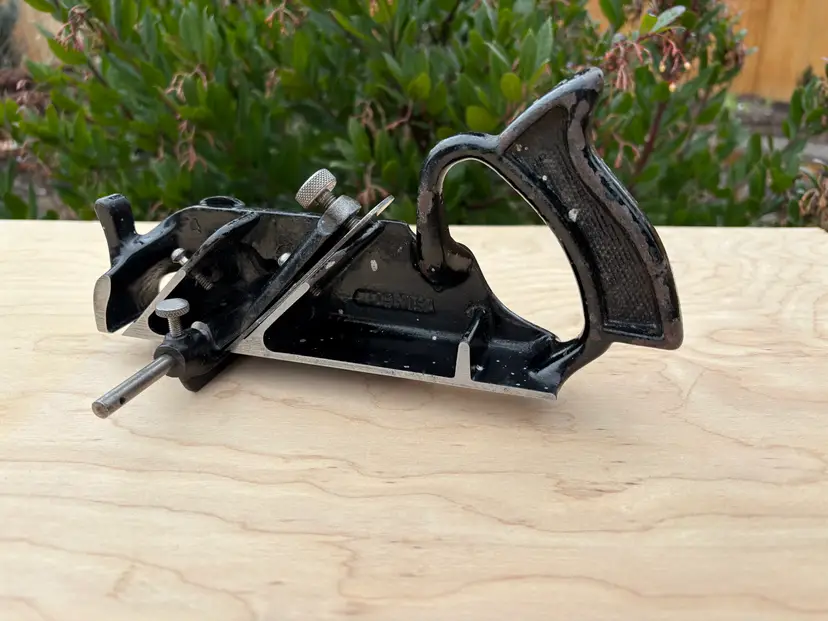 Sargent 79 rabbet and fillister plane. Cleaned and sharpened. Complete with fence, depth stop and spur. Same 1 1/2" wide iron as a Stanley 78. Sargent made many rabbet planes sold as Crafstman and the only difference between the two brandings was the stamp on the iron. The Craftsman iron is from the 1930's going by the style of the trademark. The body of the plane has the stipple pattern which I think Sargent didn't use until the 1940's. Sargent made it but I can't tell whether it's officially a Sargent or Craftsman brand.