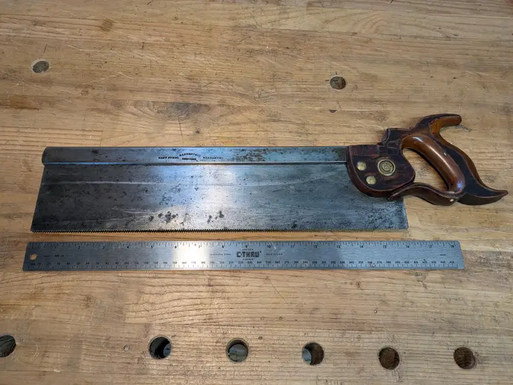 This is a great classic saw made by Jennings for Sargent. This saw was professionally sharpened by Bad Axe to a hybrid tooth pattern. You won't find a better classic sash saw.