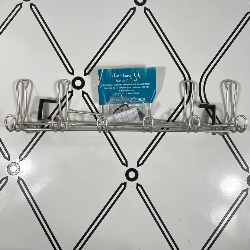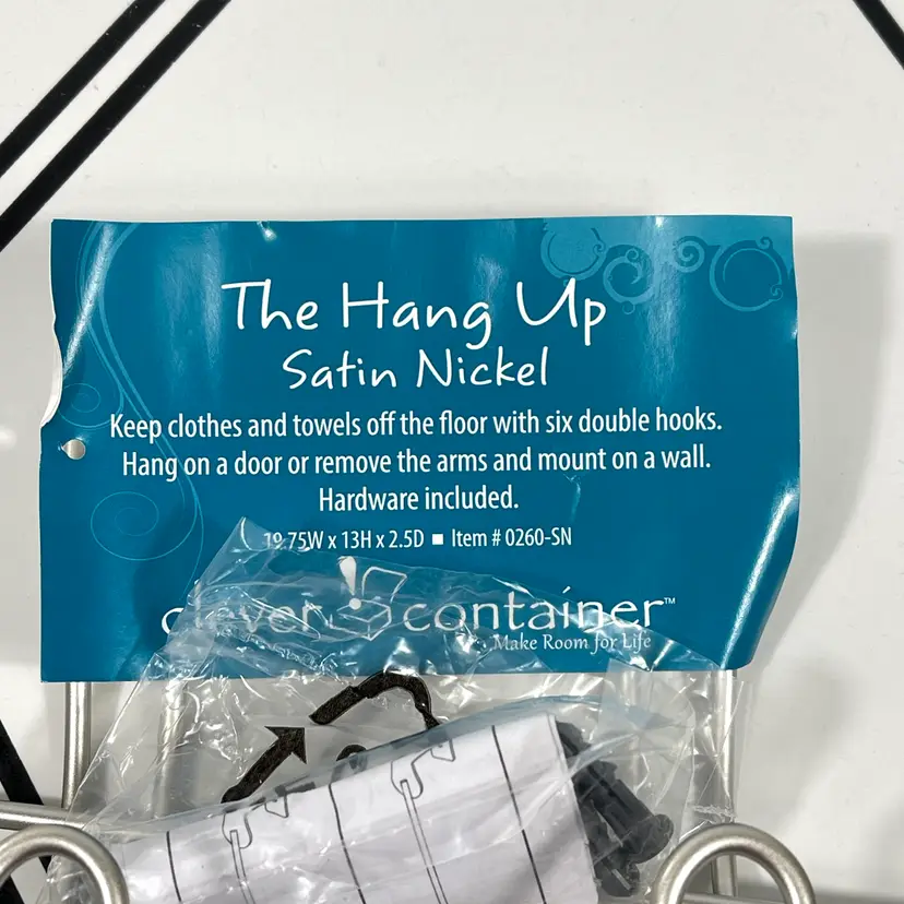 Organize your space with this versatile Clever Container. Hang it up over the door or mount it as a wall-mounted hook rack. Featuring six double hooks, this rack keeps clothes and towels off the floor and within easy reach. Its sleek satin nickel finish complements any decor, and the durable construction ensures long-lasting use. Hang it effortlessly on a door or mount it on a wall for immediate clutter control. Perfect for bedrooms, bathrooms, or entryways.