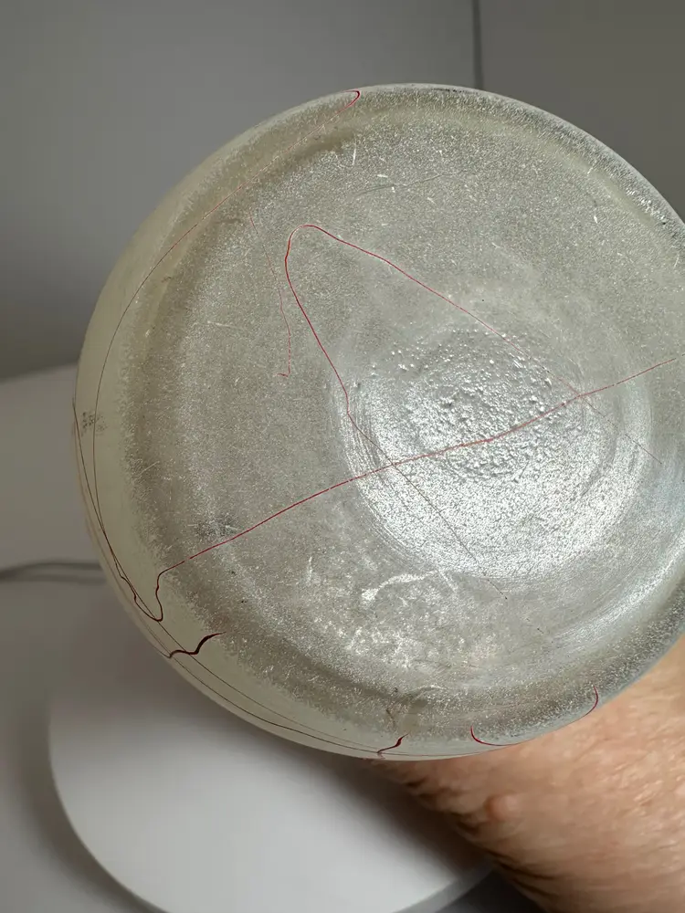 This vas is 6.5 inches tall and 2.75 at the widest point. There are no chips or cracks, some loss of threading in one area (see photo)