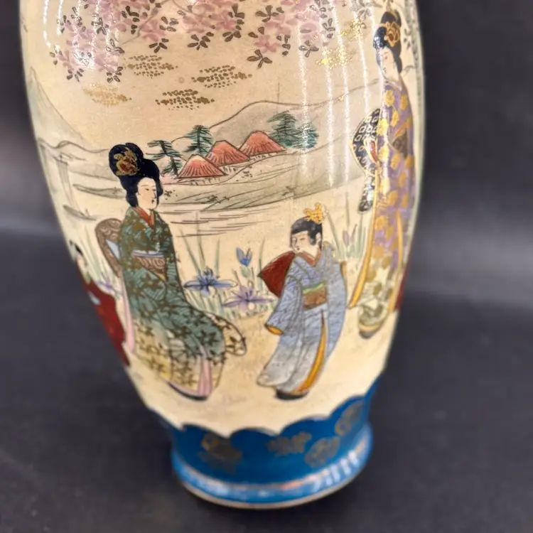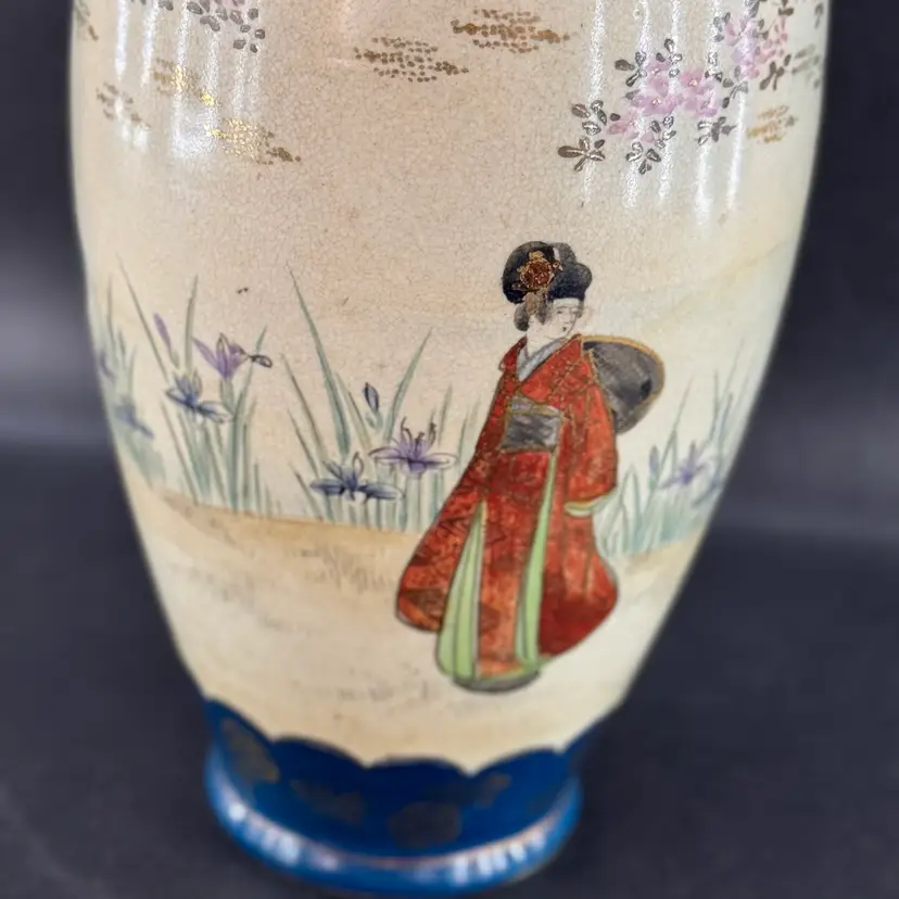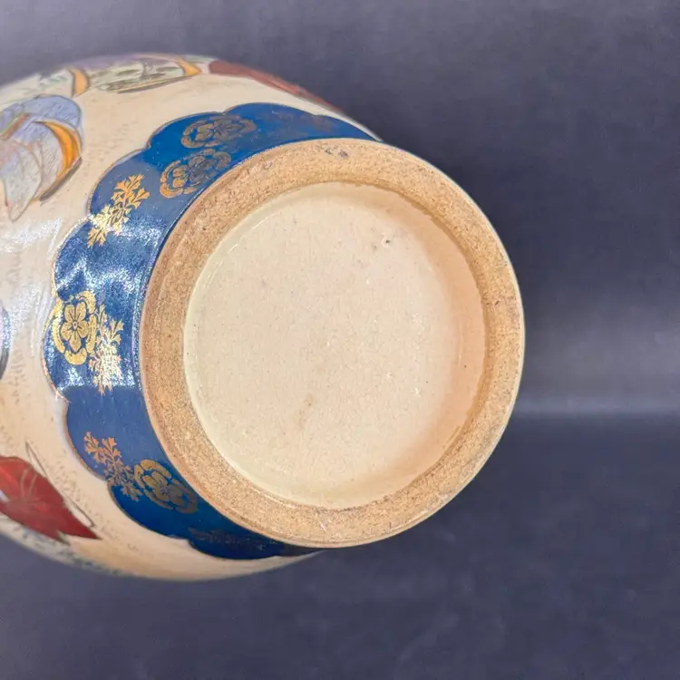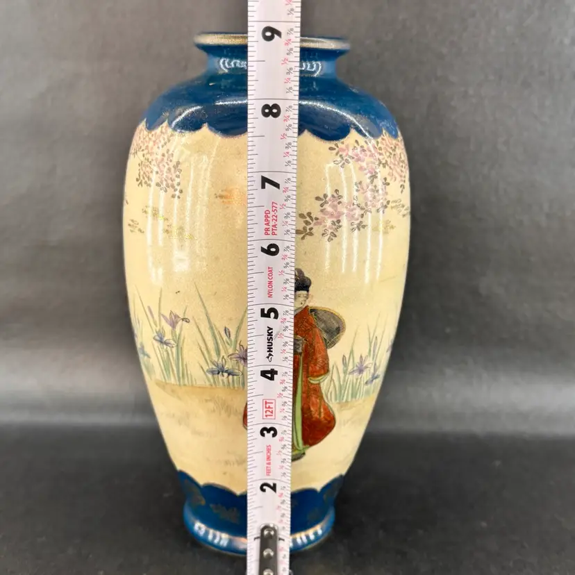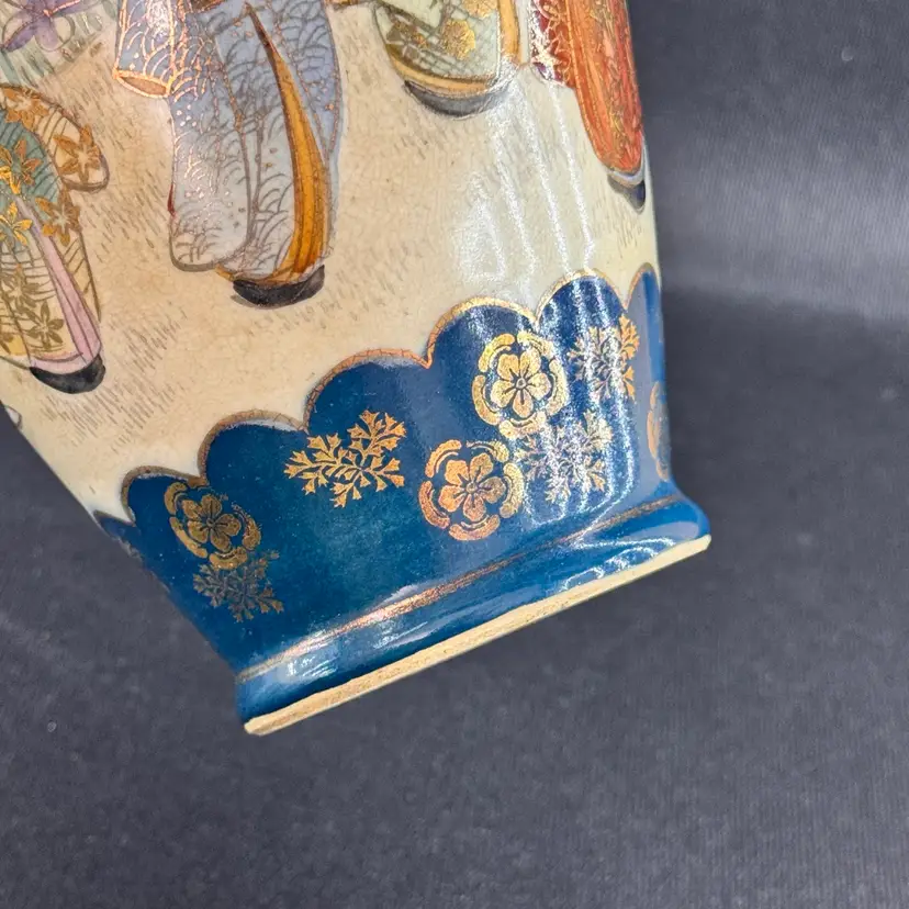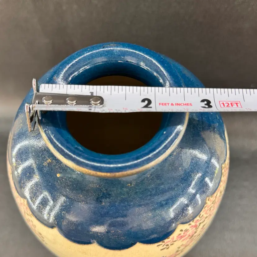 No markings on this piece. Unsure of its age. Excellent condition. No chips or cracks. Stunning dark teal color with gold accents. Approximately 9 inches tall.