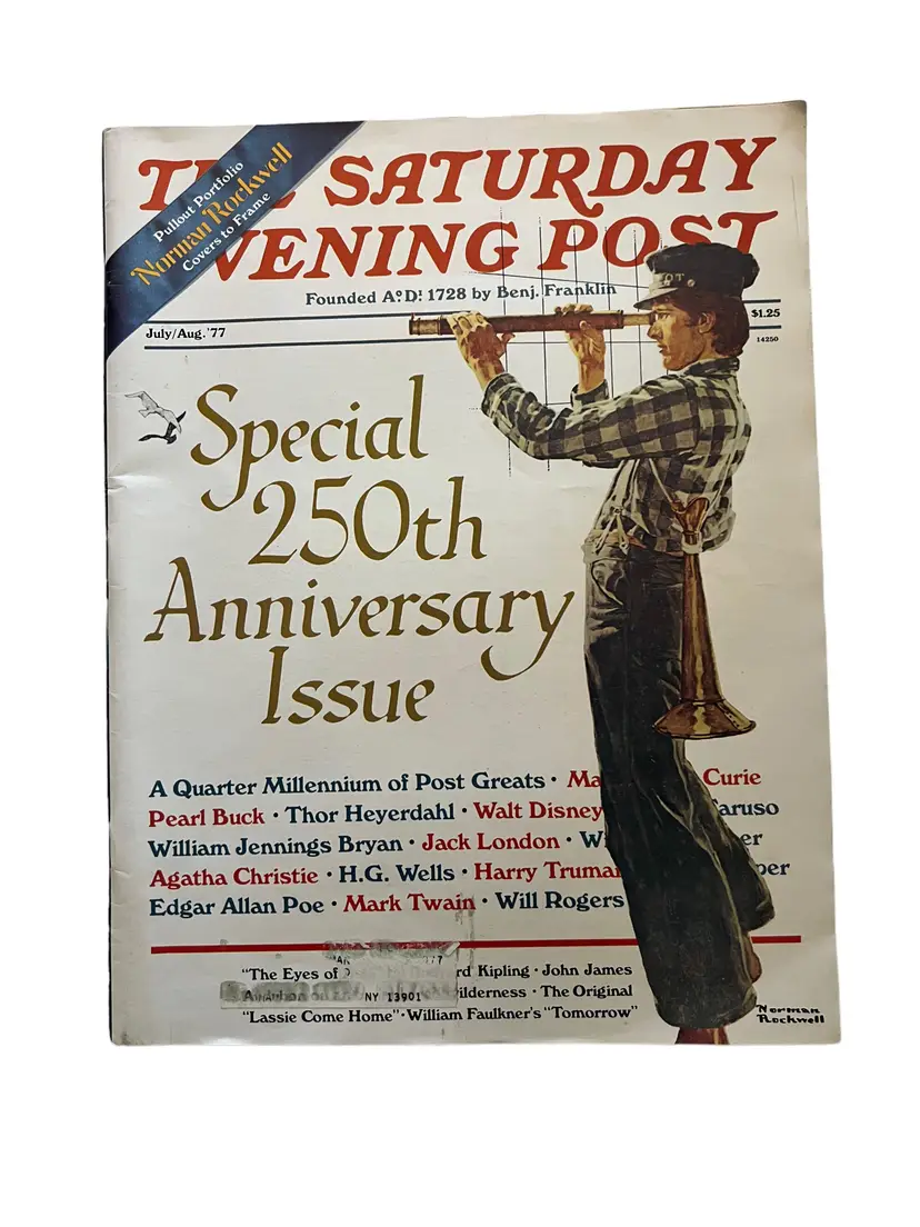 Special 250th Saturday Evening Post Anniversary Edition published in August 1977, with cover art by Norman Rockwell. Contains excerpts from the best of feature articles, serialized novels, mystery series, short stories, humor and poetry from the Saturday Evening Post's founding by Ben Franklin in 1728 through 1977 - a remarkable span of 250 years in continuous publication!