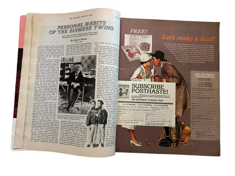 Included is a pullout portfolio with six of famous cover artist Norman Rockwell's most popular Saturday Evening Post covers suitable for framing. Plus the pages of classic vintage full-page advertising from the 1920s through the 1970s. A special 128 page Anniversary edition chocked full with really neat stuff! A great find in such good condition.