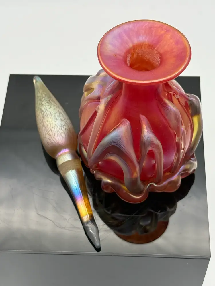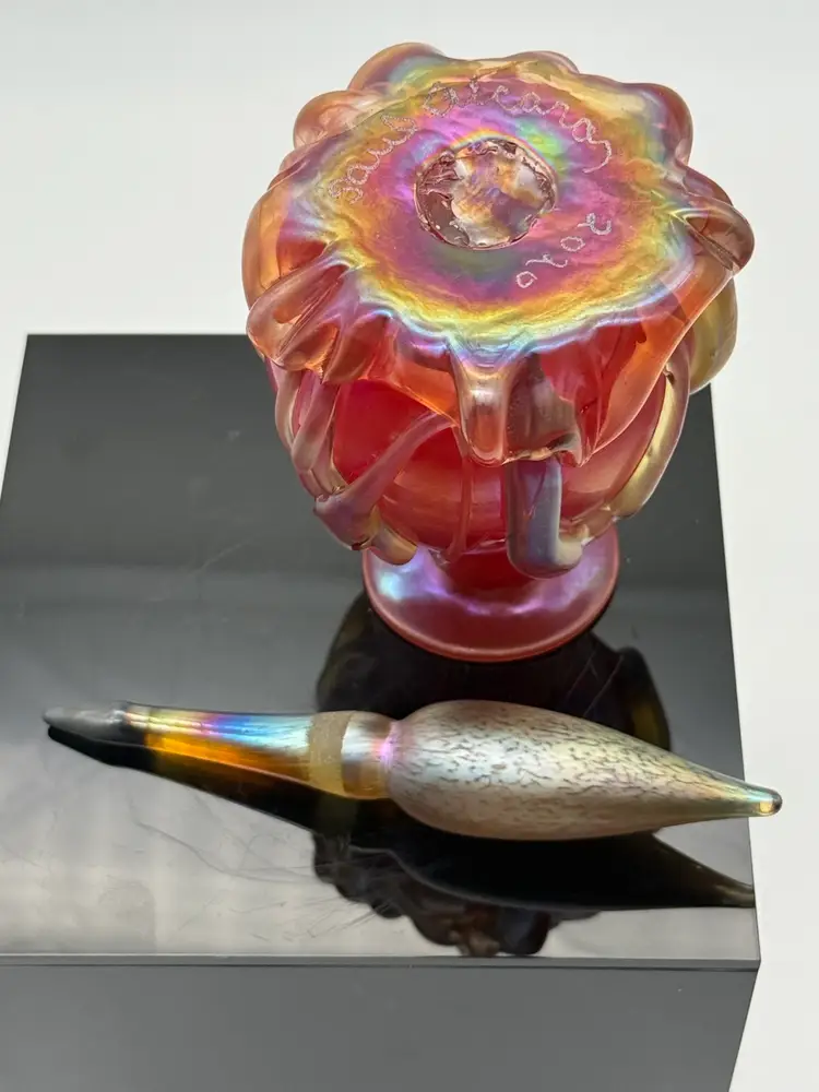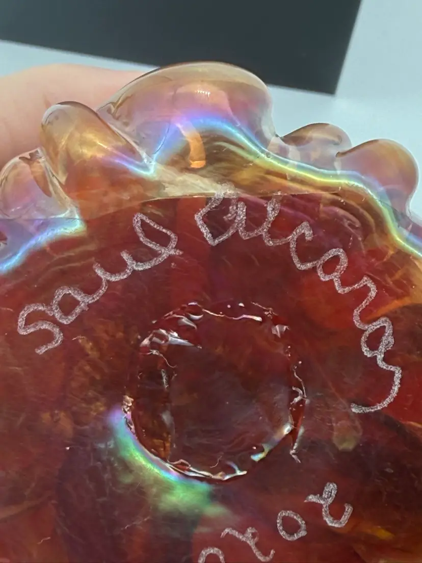 Measures 5.5” tall, 3” wide No chips or cracks Black riser not included Signed Saul Alcaraz 2020