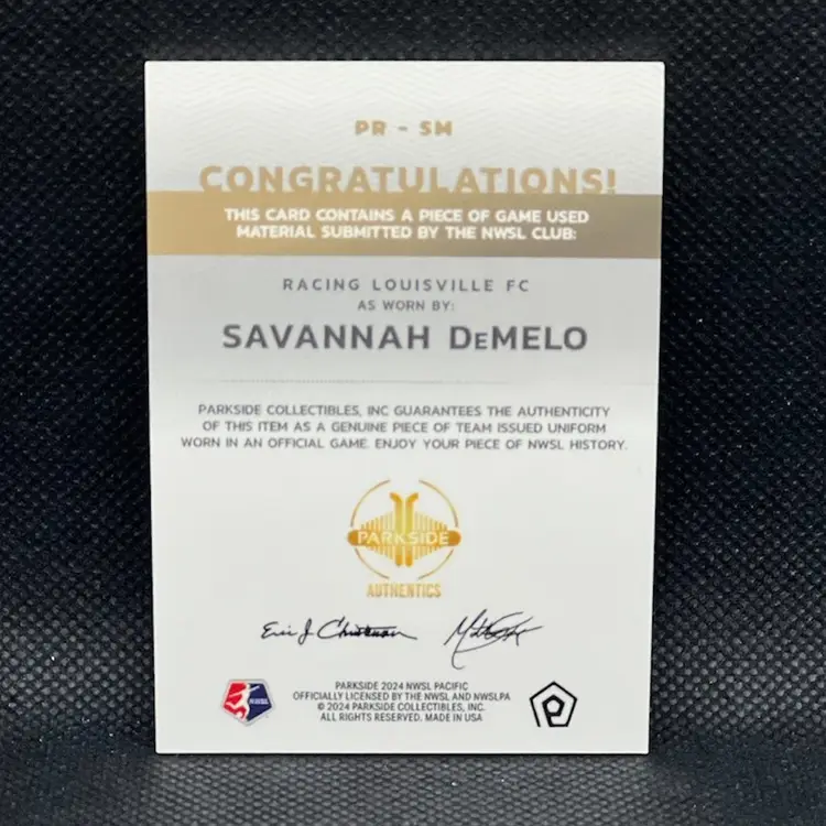 Savannah Demelo 2024 Parkside Pacific Relic Racing Louisville Soccer Card (C)