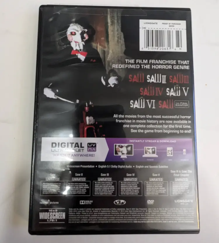 Release Years: 2004 – 2017 Total Runtime: Approx. 855 minutes Includes: Saw I–VII + Jigsaw (2017)