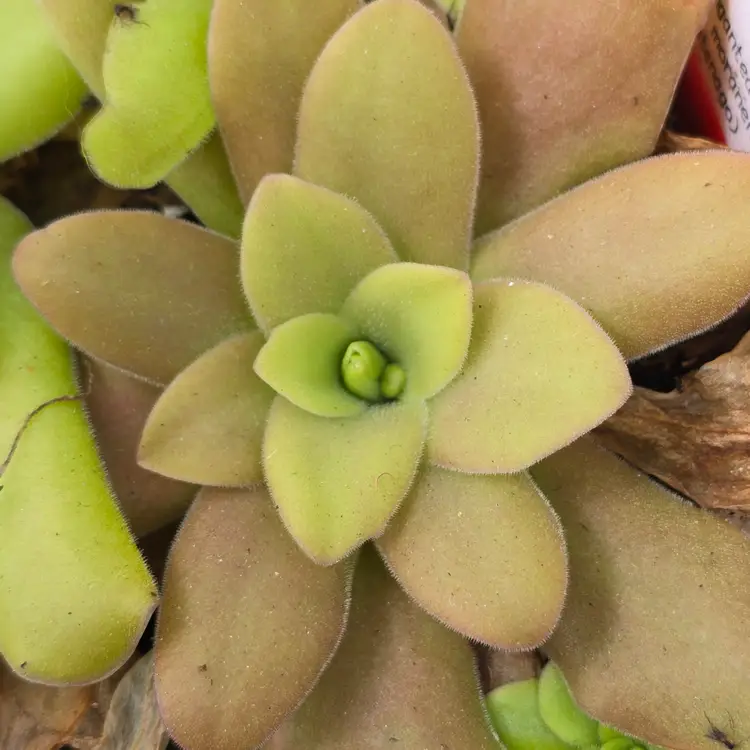 This listing is for one random seed grown plant from this cross. Some of these blush red or pink in bright light, some have gorgeous veining, and all of them have large vibrant magenta flowers! These get HUGE! Some get too big to even ship during the growing season, so get them now while they're in their slightly smaller winter form!