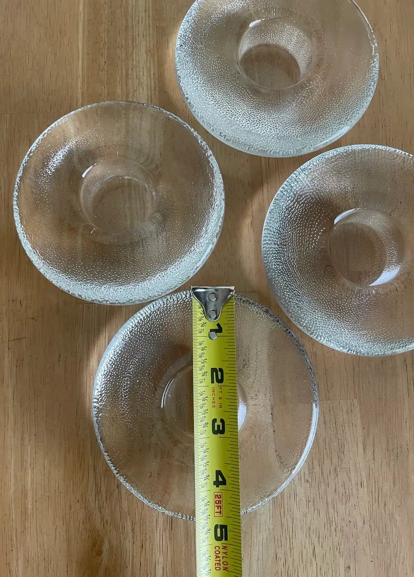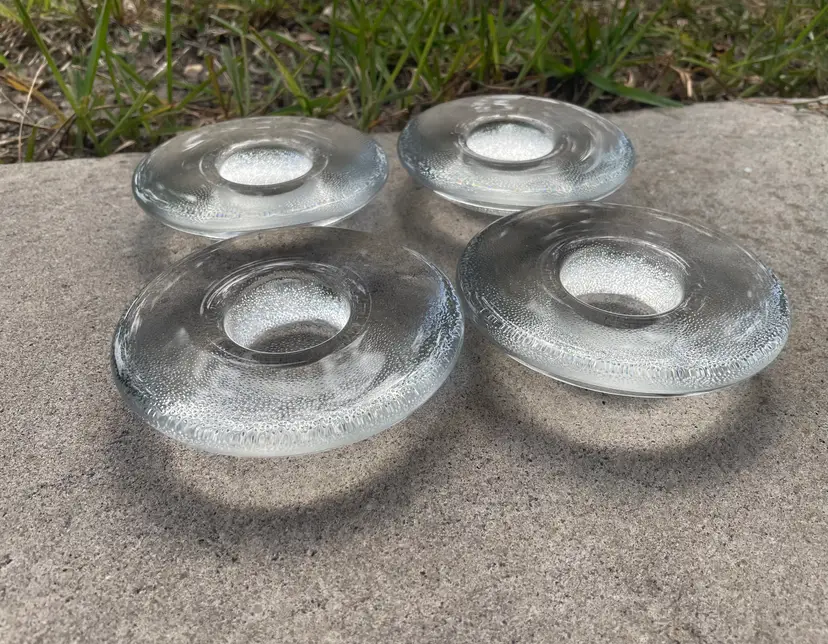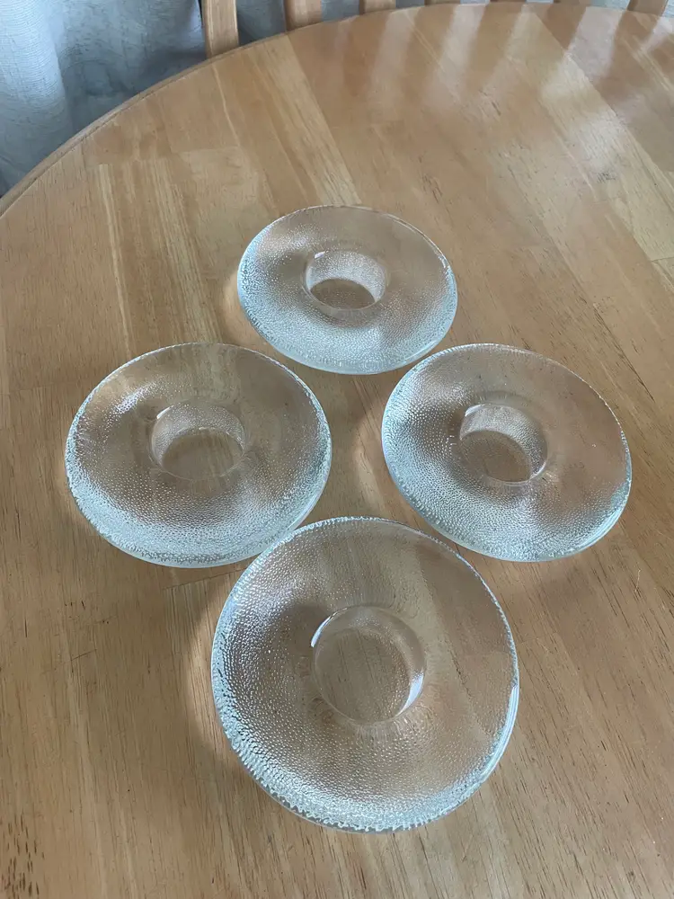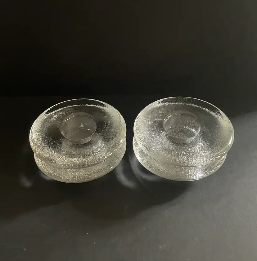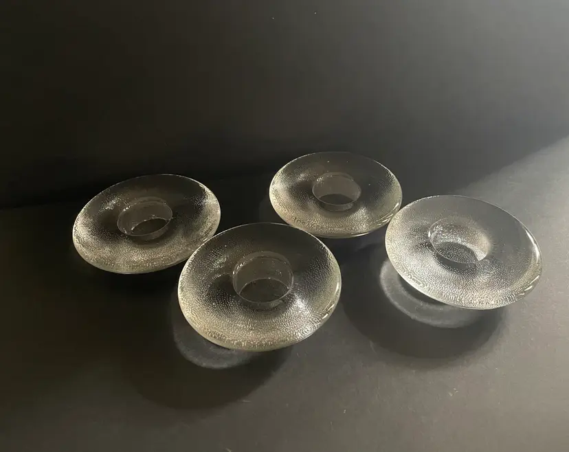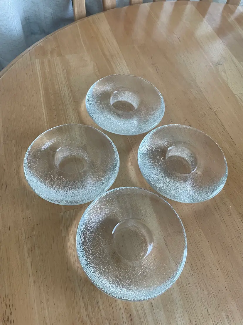 Set of 4 candleholders. Scandinavian glass (unmarked). Kind of a "snowy" texture. Very pretty for the winter season. Price is for the set.