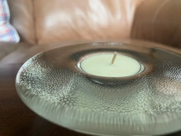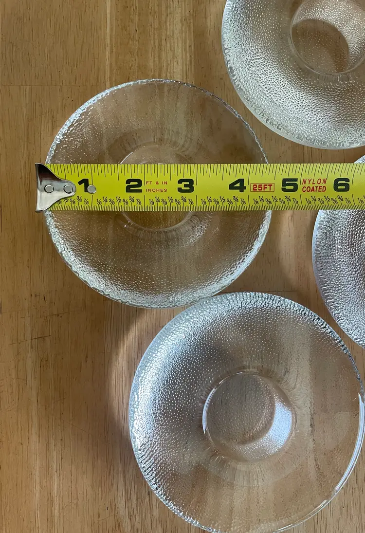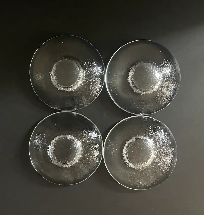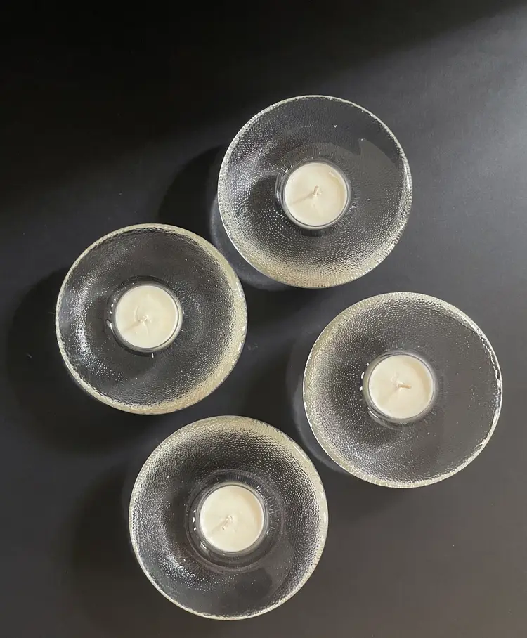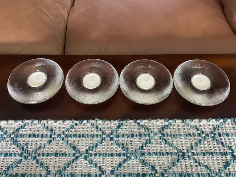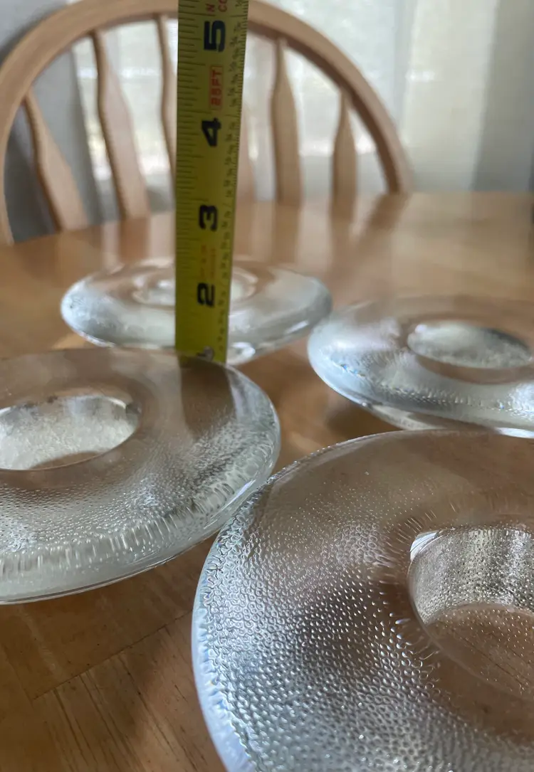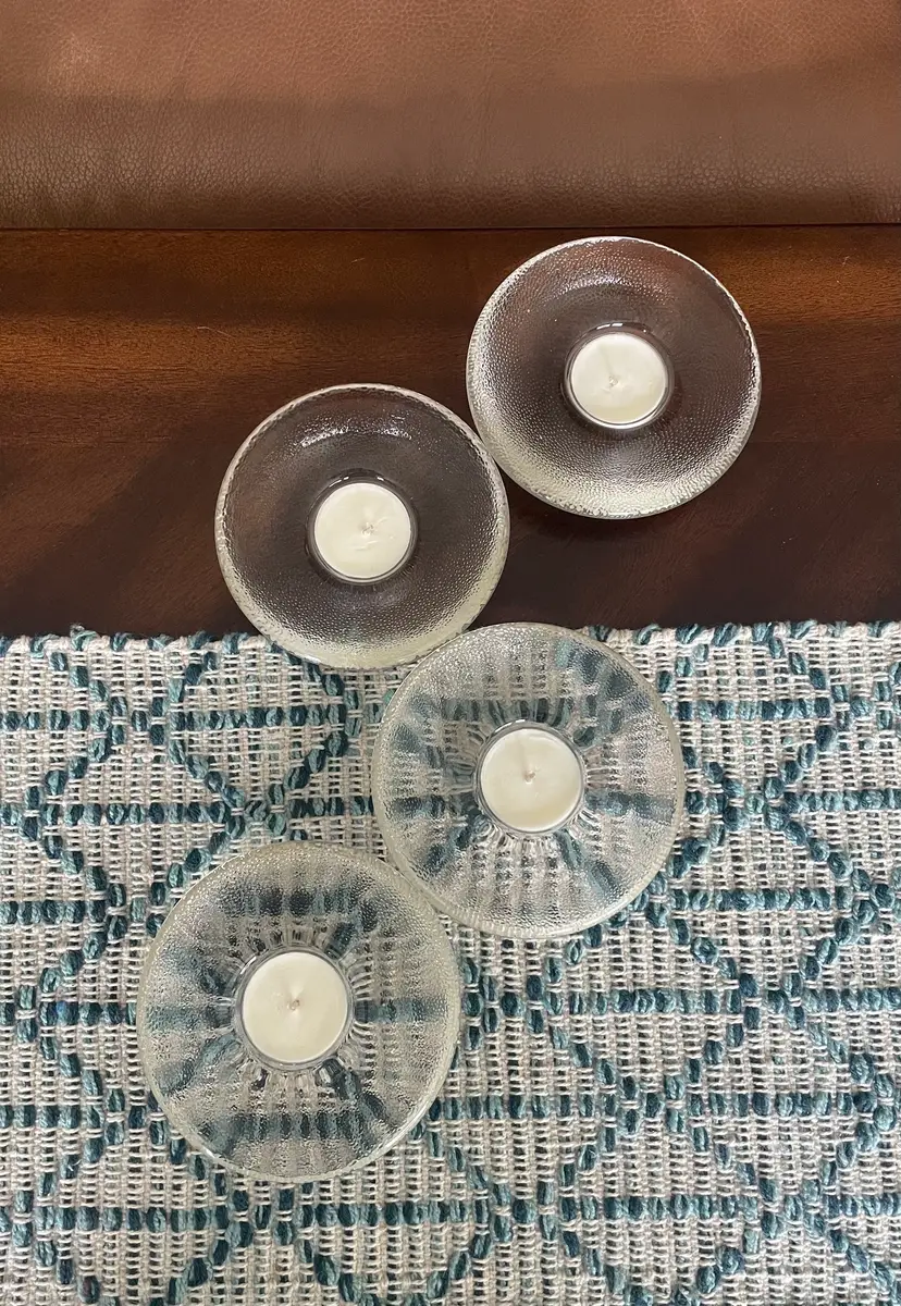 Set of 4 candleholders. Scandinavian glass (unmarked). Kind of a "snowy" texture. Very pretty for the winter season. Price is for the set.
