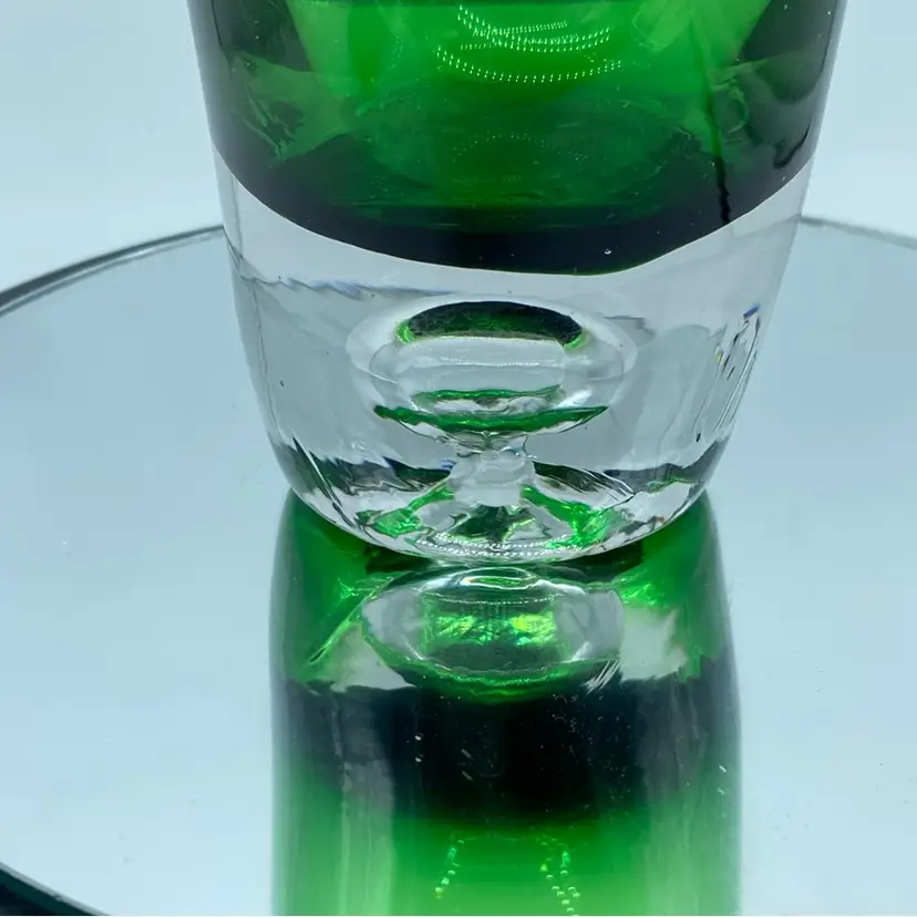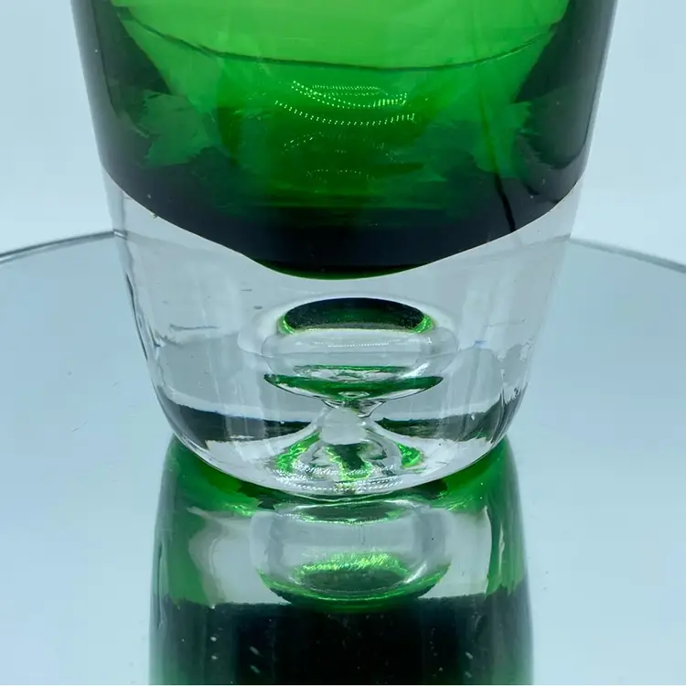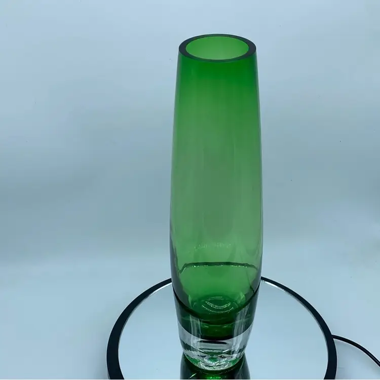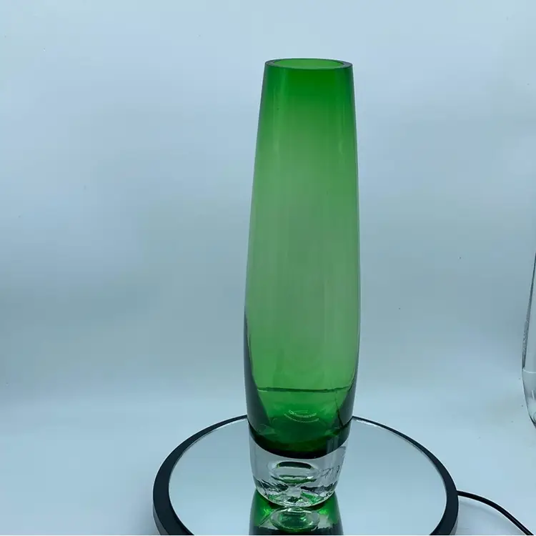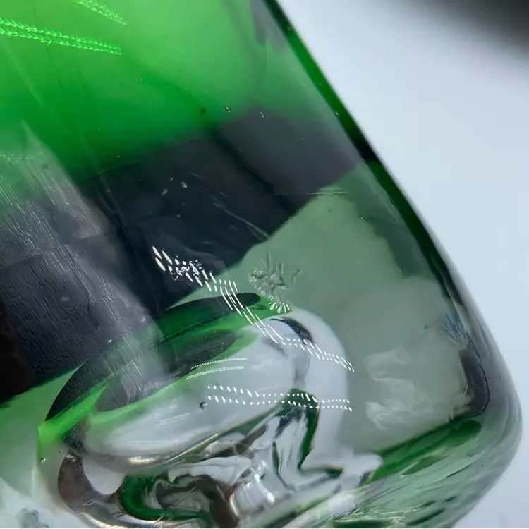 The controlled bubble technique, where air bubbles are intentionally introduced and arranged within the glass, became a popular decorative element in mid-century Scandinavian glasswork. This vase exemplifies the clean lines and minimalist aesthetic typical of Scandinavian glasswork. Notable glassworks from this era include Iittala, Orrefors, and Kosta Boda, each contributing to the distinctive style that defines Scandinavian glass.