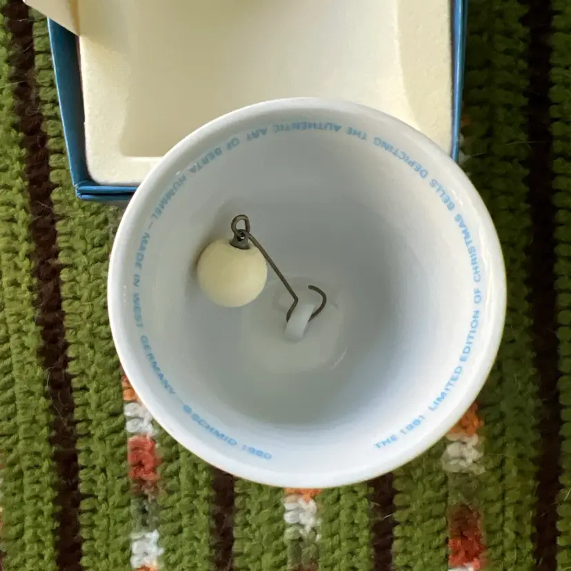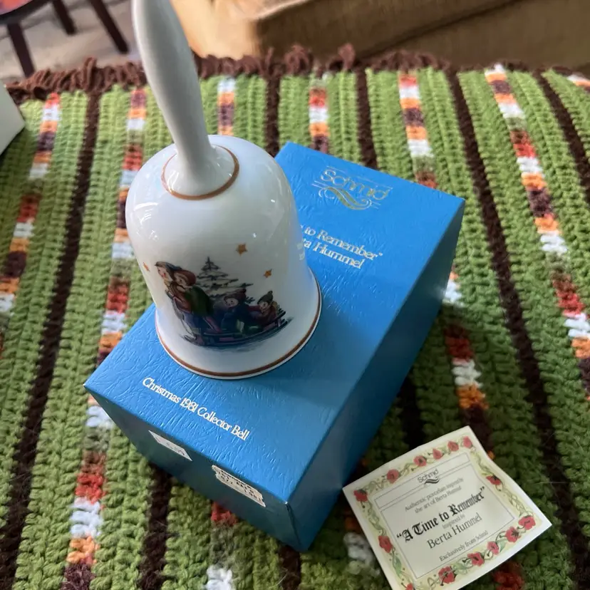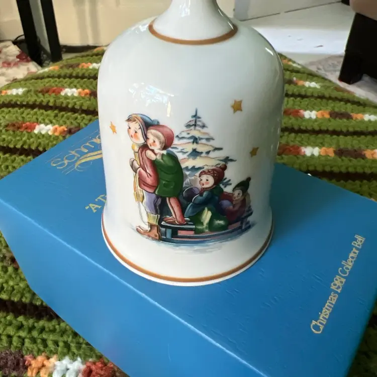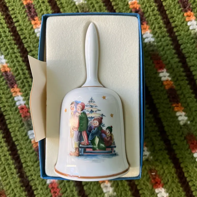 The Schmid Bros 1980 Ltd Ed Christmas Bell is a medium-sized ceramic bell featuring a multicolor design, perfect for remembering special occasions. This limited edition bell from the late 20th century showcases the iconic Sister Berta Hummel character from the Hummel collection. Made in Germany in 1978, this glazed bell stands at 6 inches tall and is a charming addition to any Christmas decor collection, suitable for adults and all occasions.