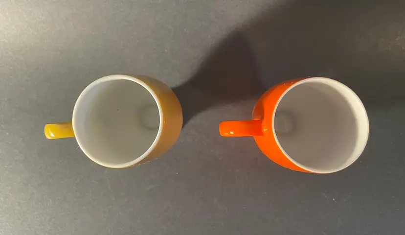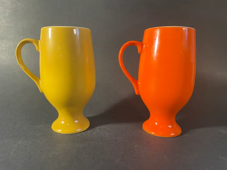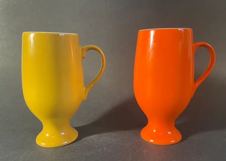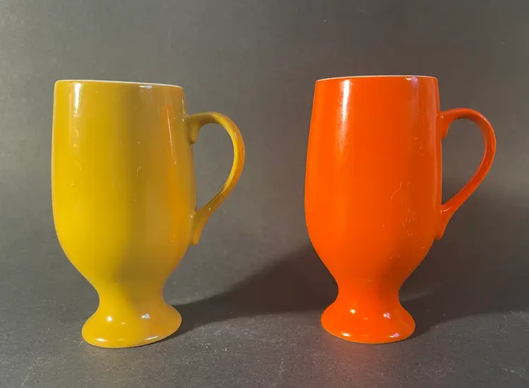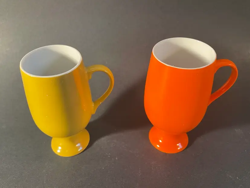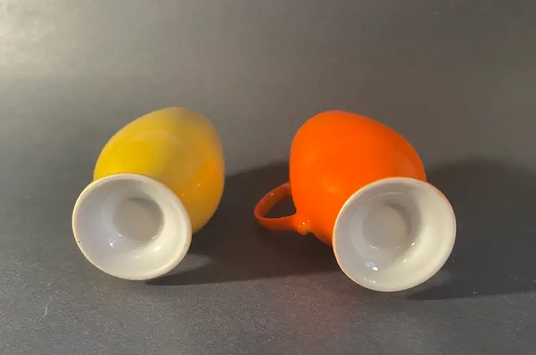 Two porcelain demitasse cups. They are 4” tall, and are in excellent condition, with no damage.