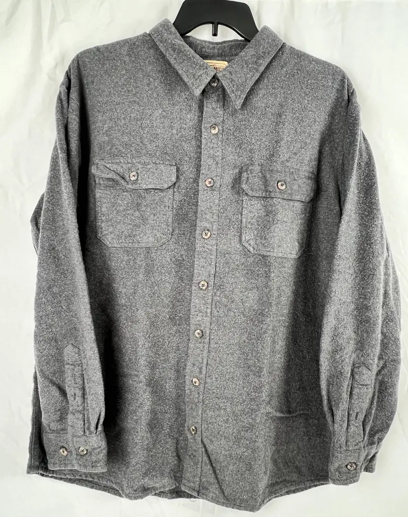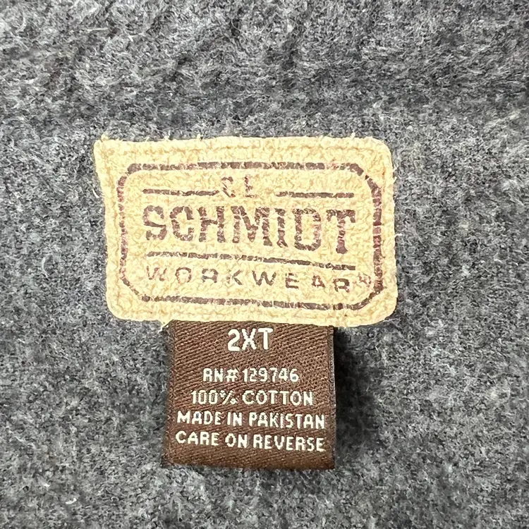 Durable heavyweight cotton flannel by Schmidt Workwear. Classic gray with button front and chest pockets. Ideal for work or casual use. Big & Tall size with extra length.
