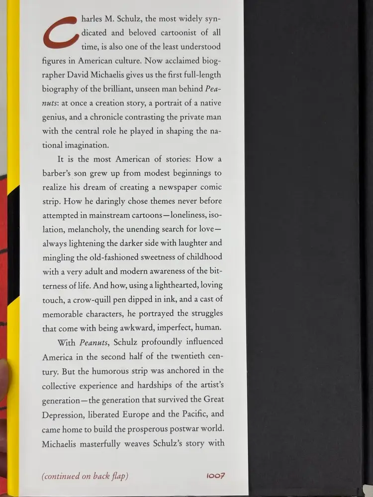 I collect Peanuts books and am clearing out some of my doubles… This listing is for “Schulz and Peanuts: A Biography” by David Michaelis, hardcover with sleeve. Please see the photos for more info and condition.