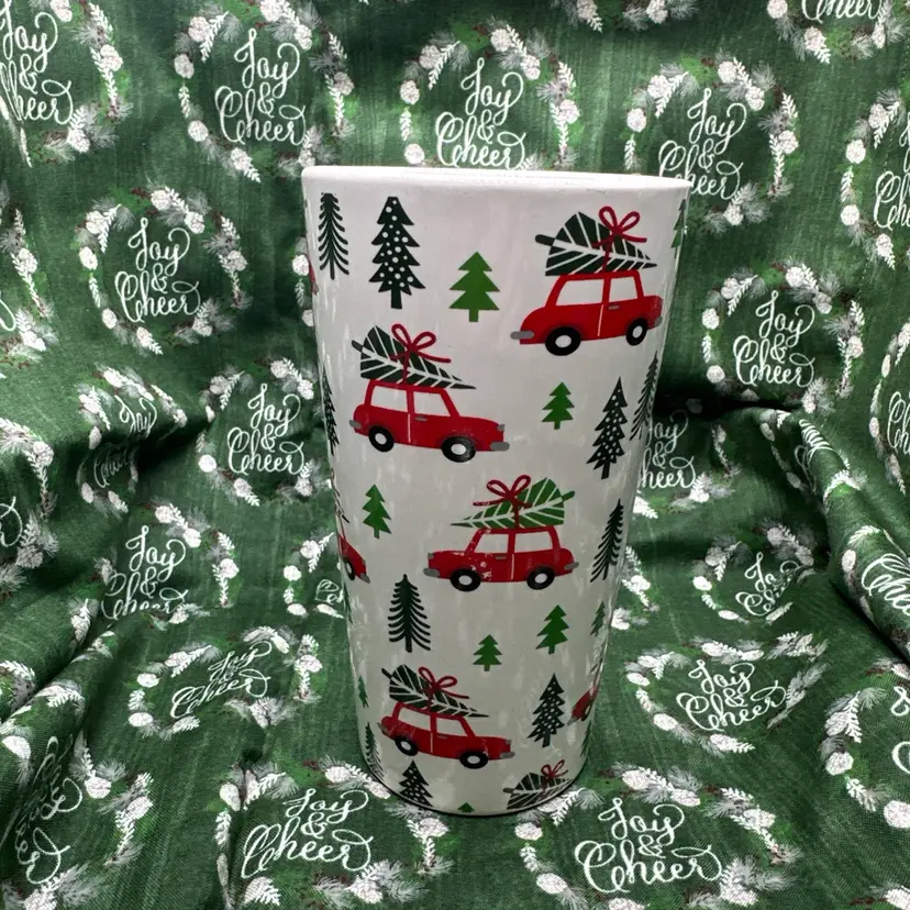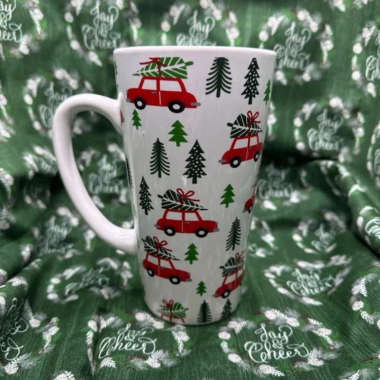 SCM Home Red Car Christmas Trees Stoneware Tall Holiday Mug New 6”H 3 1/2 W