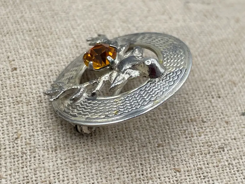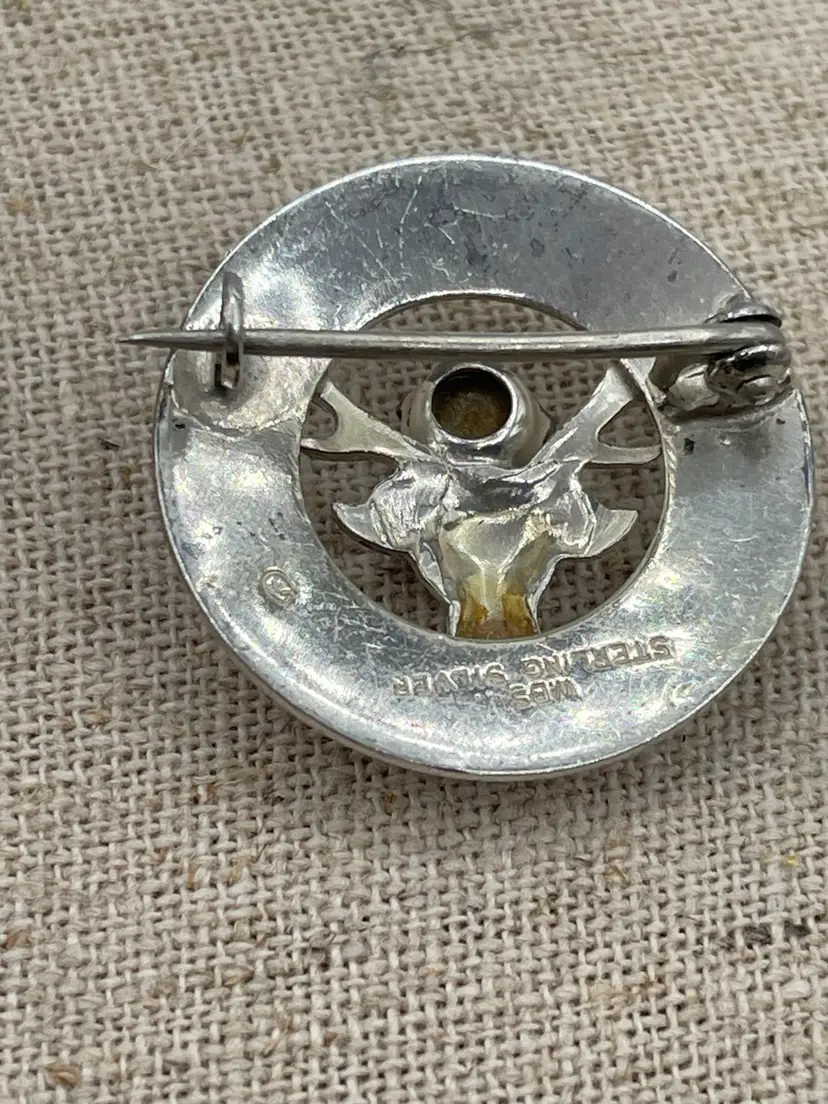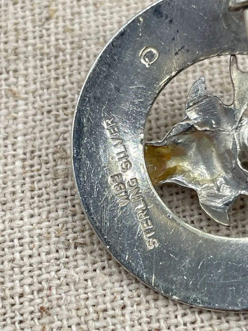 Scottish Silver Brooch with Stag or Deer and a glass citrine stone Marked WBS Sterling Silver. Made by Ward Brothers 1940’s