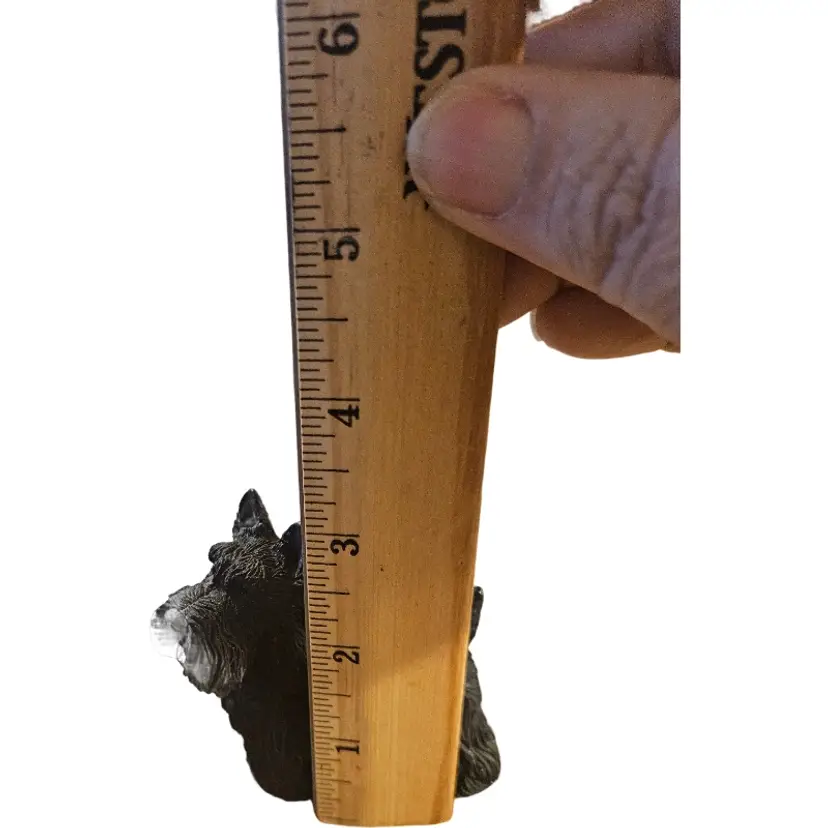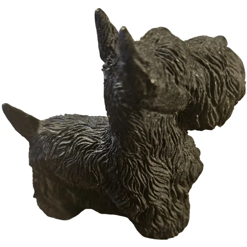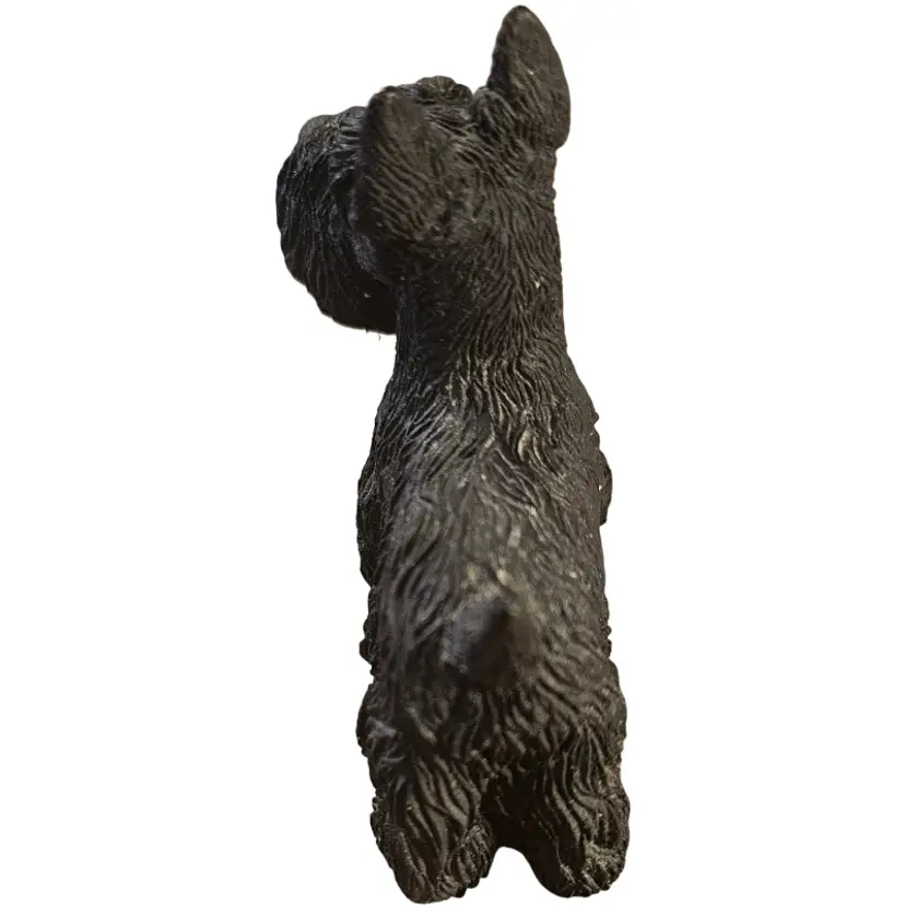 This elegant black Scottish Terrier dog sculpture adds sophistication to any decor. Perfect for dog enthusiasts.